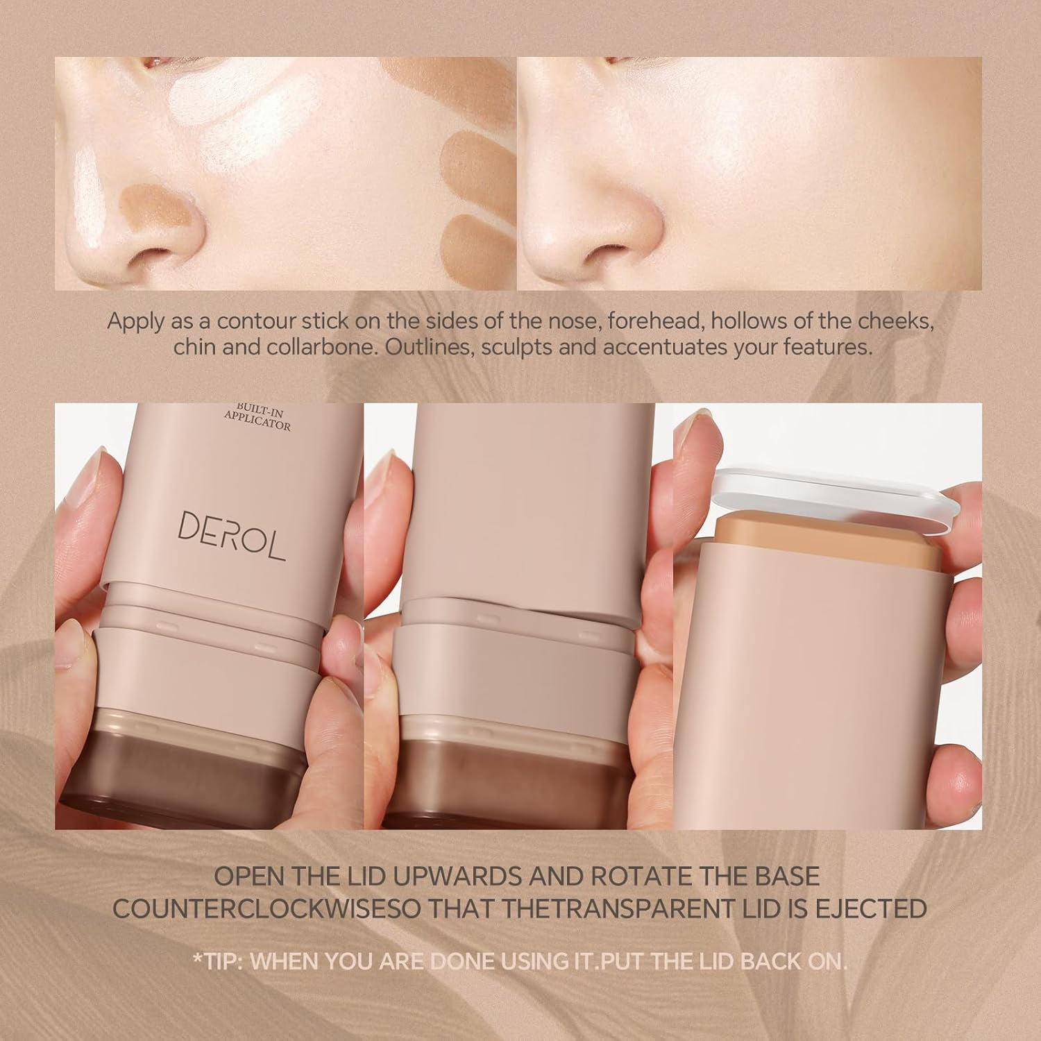 - Recommended Uses For Product : Apply as a contour stick on the sides of the nose, forehead, hollows of the cheeks, chin and collarbone. Outlines, sculpts and accentuates your features. Apply as a contour stick on the sides of the nose, forehead, hollows of the cheeks, chin and collarbone. Outlines, sculpts and accentuates your features.