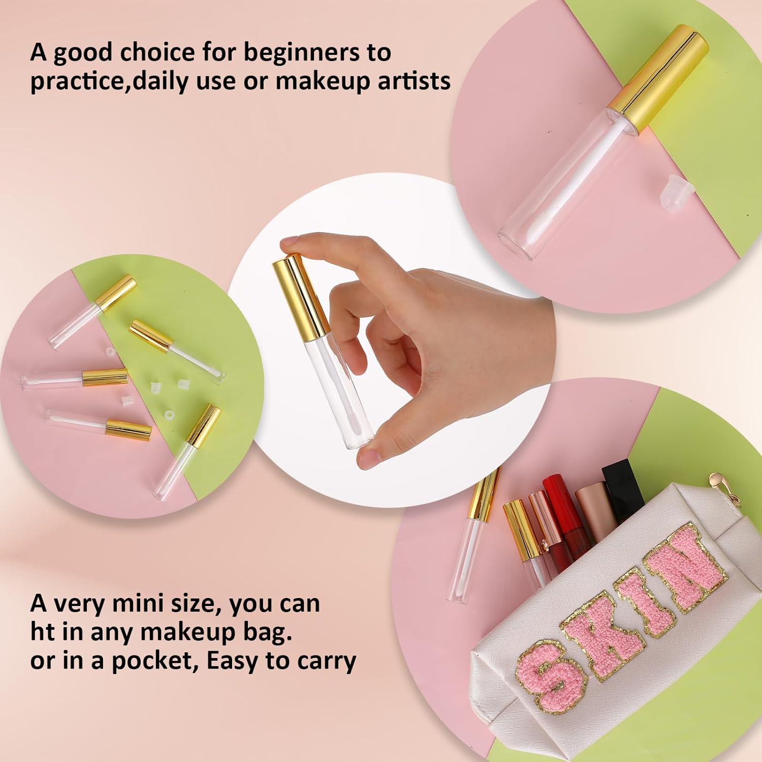 - 【Versatile Usage】The package contains 5 mini reusable clear empty lip gloss tubes. These empty lip gloss tubes are perfect for DIY lip gloss lovers, makeup artists and beauty professionals. Such as lip balm, lip gloss, essential oil or perfume samples, giving you endless possibilities to show your unique style.