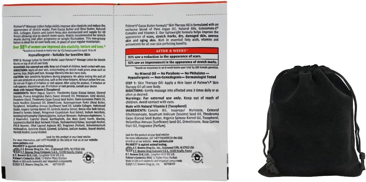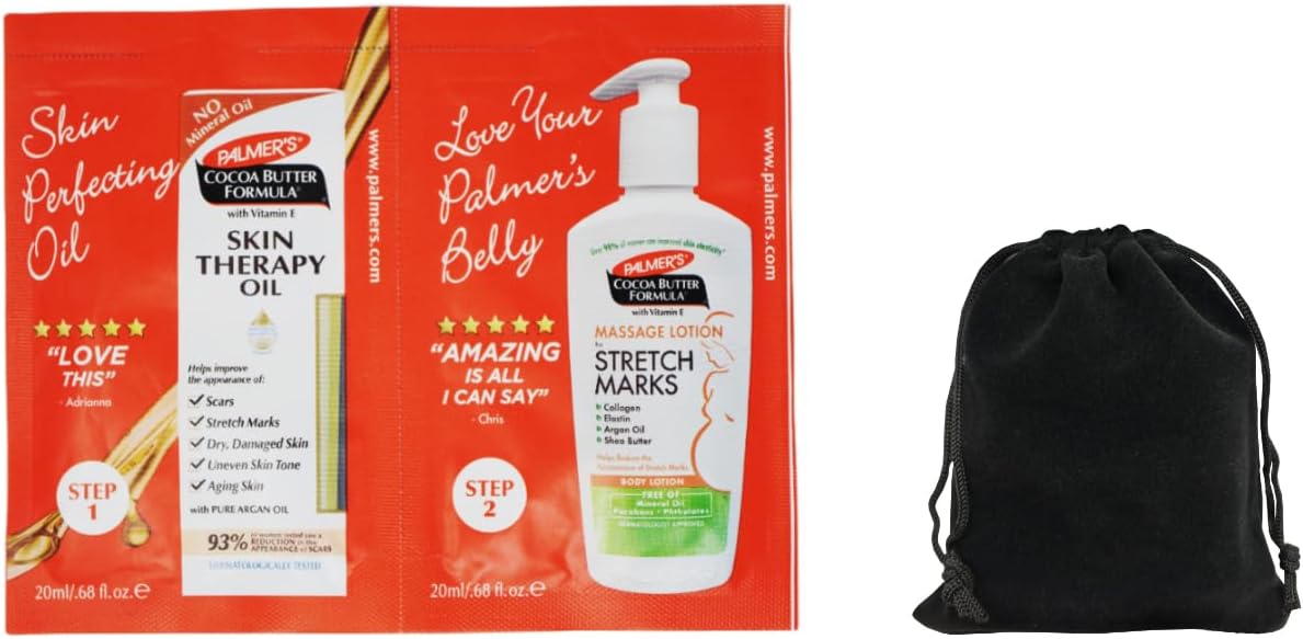 Palmer's Cocoa Butter Formula Skin Therapy Oil and Massage Lotion for Stretch Marks, Travel Pack, 0.68 FL OZ, Intensive Hydration, Skin Elasticity, Pregnancy Safe, Paraben-Free, 30 CT, W/Travel Pouch