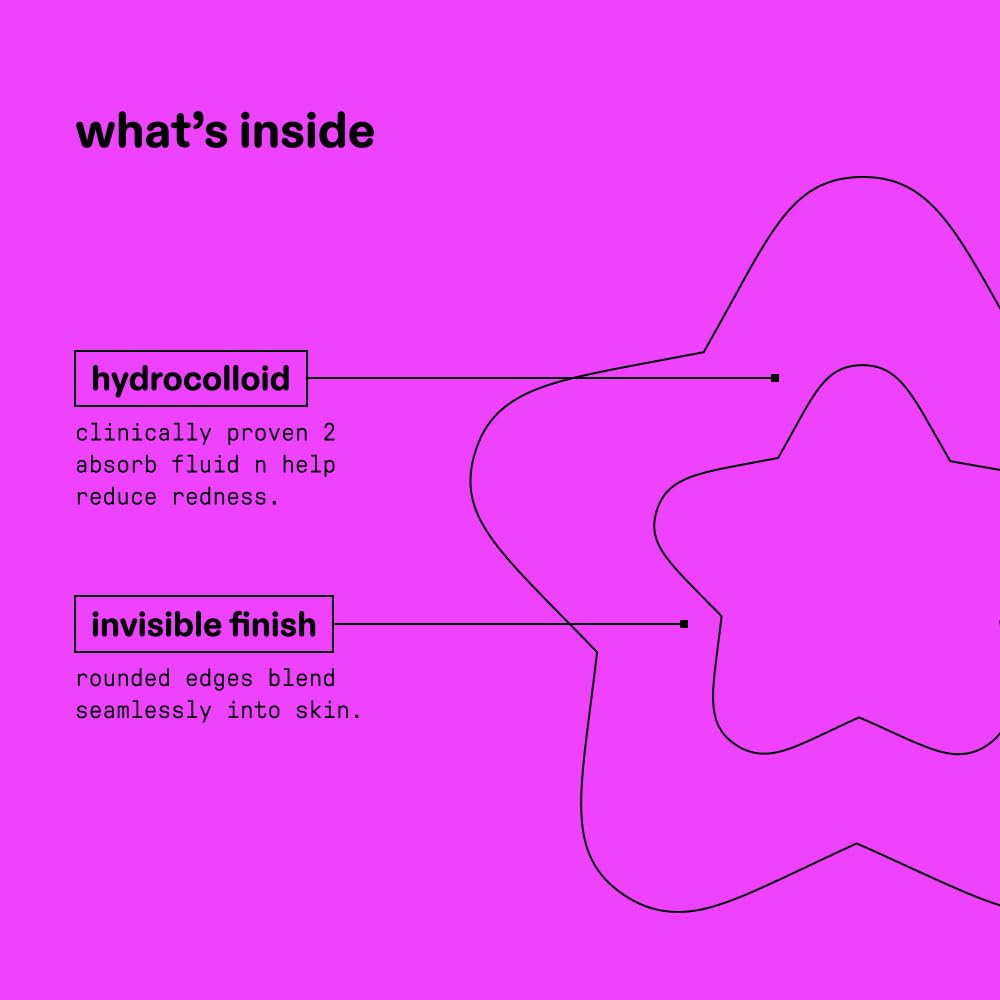 - 100% CLEAR: Bestselling star-shaped pimple patches with a NEW invisible finish. Made with rounded edges and a seamless edge that blends seamlessly into skin.