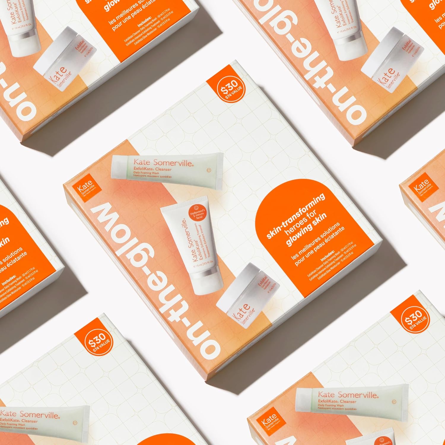 - ExfoliKate Cleanser Daily Foaming Wash (1.7 oz) - A luxe, daily foaming face wash for all skin types that effectively cleanses away dirt, oil, makeup and other impurities while gently exfoliating to reveal softer, smoother, glowing skin.