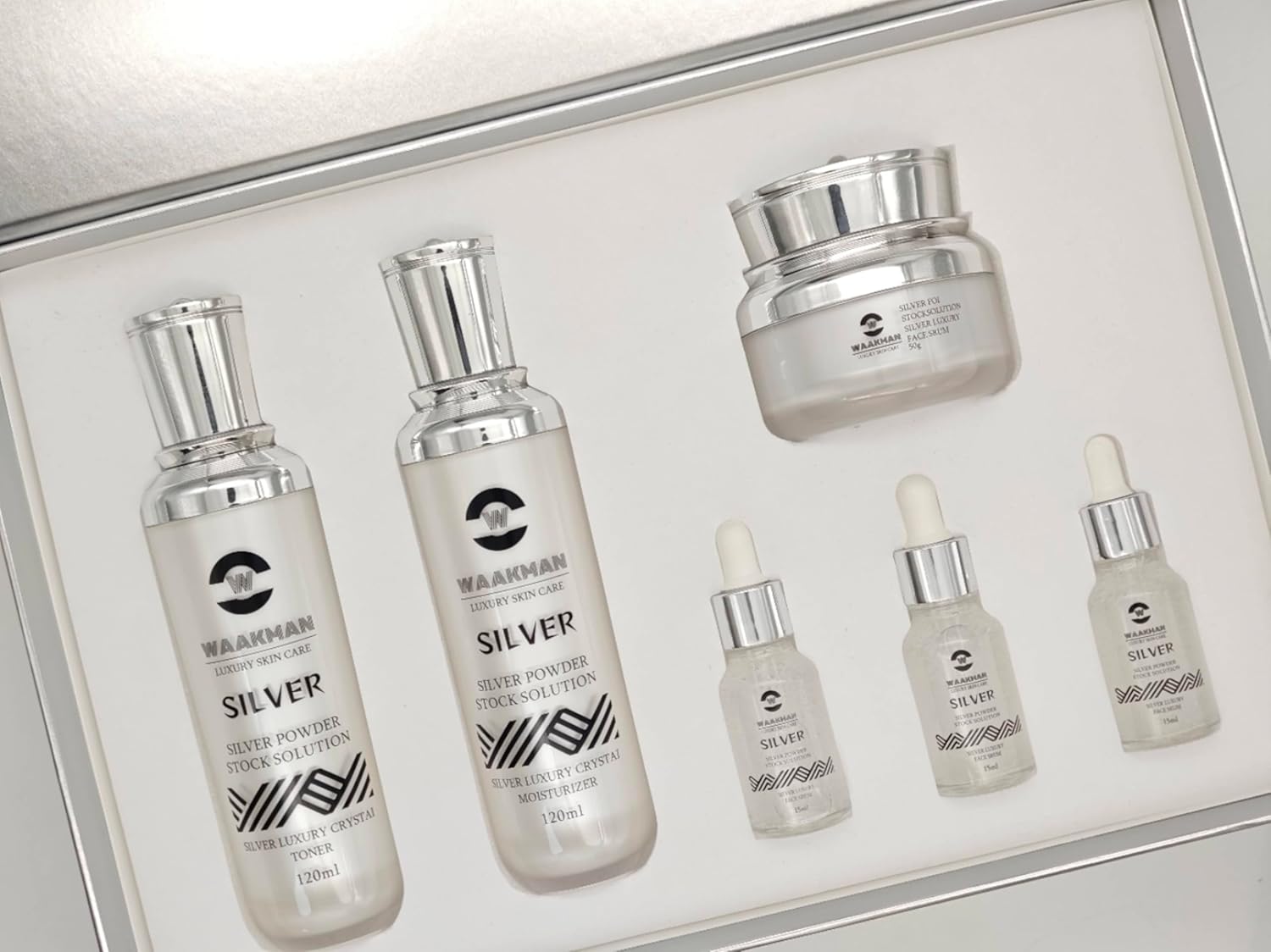 Luxury Skin Care Silver Solution, Facial Cream, Moisturizer, Toner and Serum