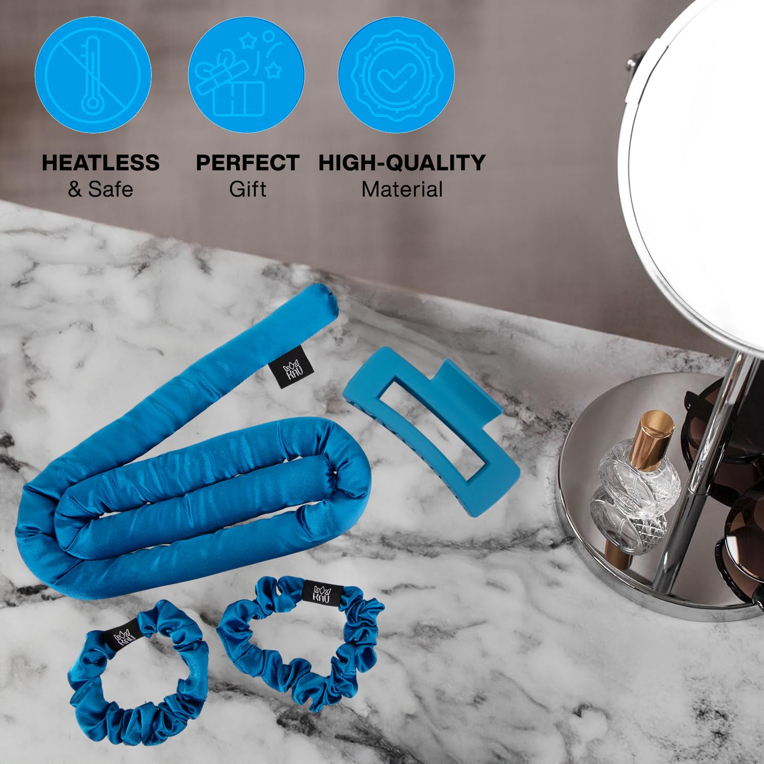 • Satin Heatless Curling Set: This beautiful curling rod set comes in different colors. The heatless curling rod set comes as a complete 4 in 1 set of satin curling rod, 2 scrunchies, and a hair clip. So you don't have to buy extra hair accessories. to complete your look.