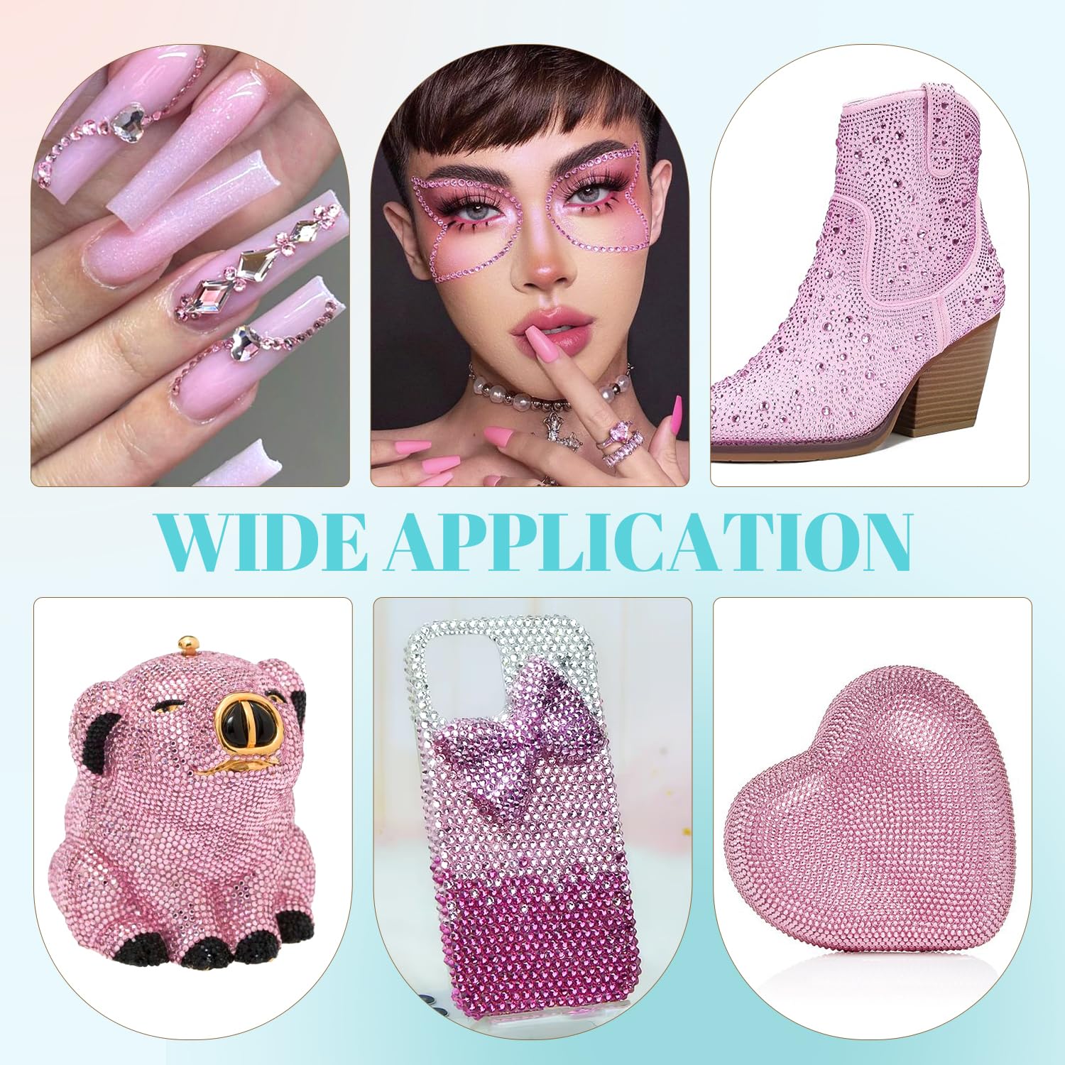 6100Pcs Resin Rhinestones for Crafting with 2Pcs 10ml B7000 Jewelry Glue, 1 Box Flatback Crystals Diamond (Light Pink) for Bedazzling Crafts DIY Nail Art Non Hotfix Gems for Clothing Shoes