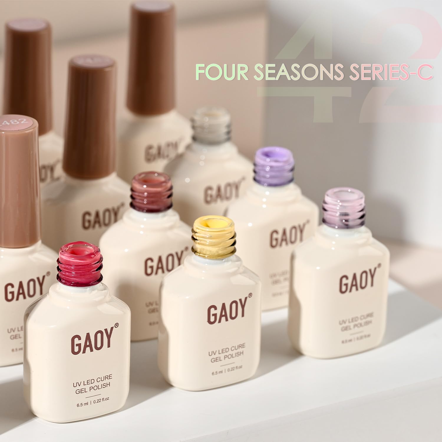 GAOY 42 Pcs Gel Nail Polish Kit, Brown Glitter Burgundy Red Colors All Seasons Gel Nail Polish Set with Glossy & Matte Top Coat and Base Coat for Salon and DIY Manicure at Home