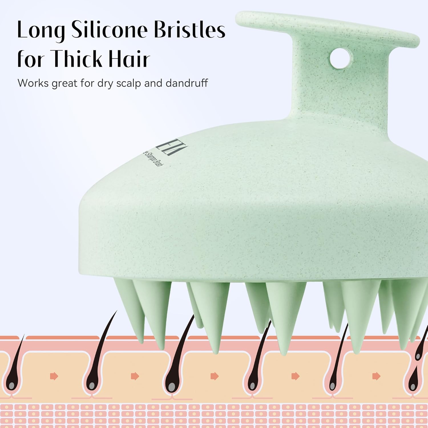 HEETA Scalp Scrubber Shampoo Brush, Scalp Massager Tool for Hair Growth, Soft Silicone Bristles for Dandruff Removal Wet Dry Use Women Men Kids Pet, Fit All Hair Types Care, Green
