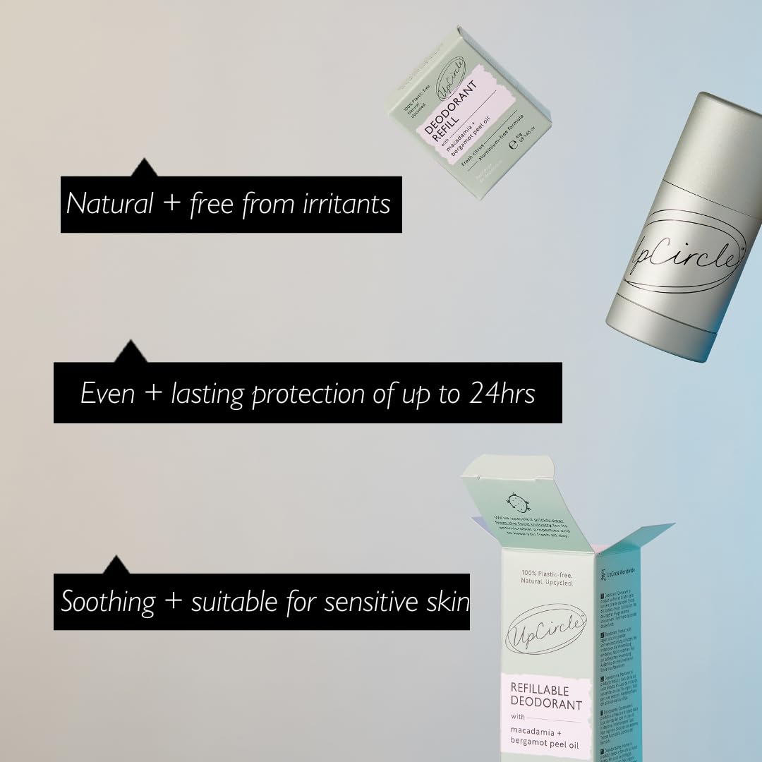 UpCircle Refillable Deodorant with Macadamia + Bergamot - 1 case + 1 refill - Suitable for Sensitive Skin - Natural - Hydrating - Up To 24 Hours of Lasting Protection