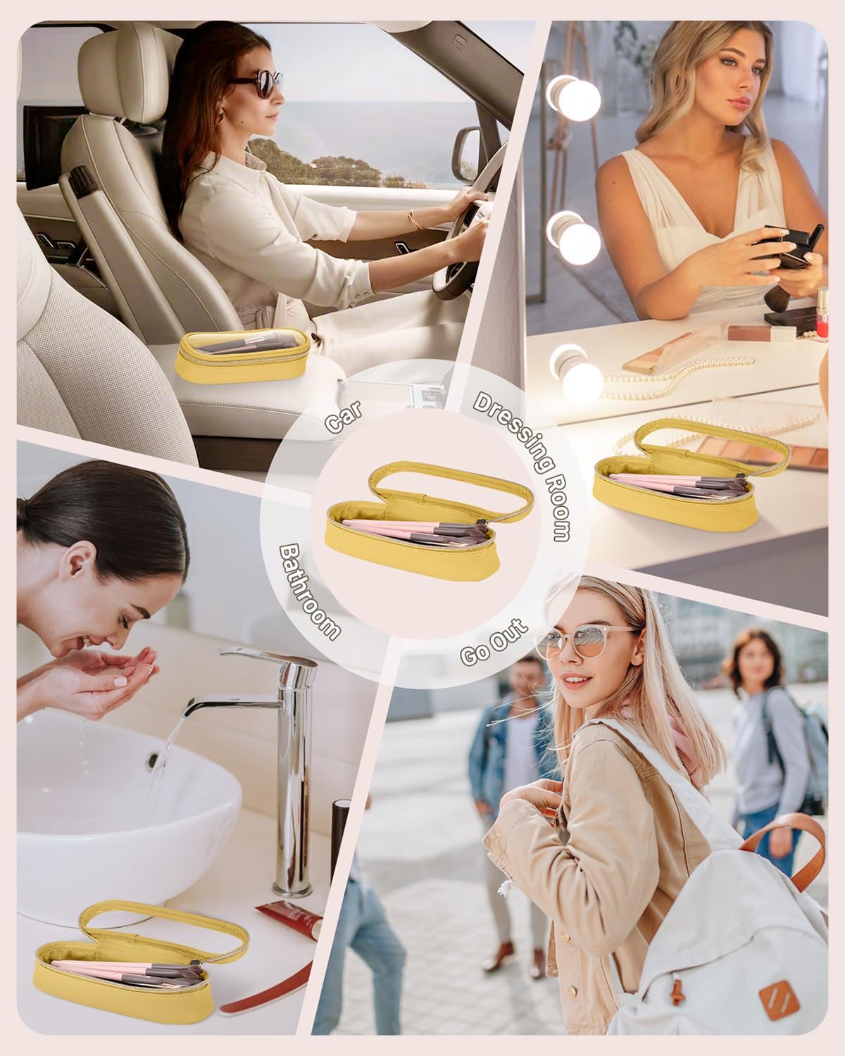 Clear Travel Makeup Brush Holder, Leather Makeup Brush Toiletry Bag, Portable Cosmetic Brush Case, Transparent Waterproof Makeup Brush Storage Bag, Yellow