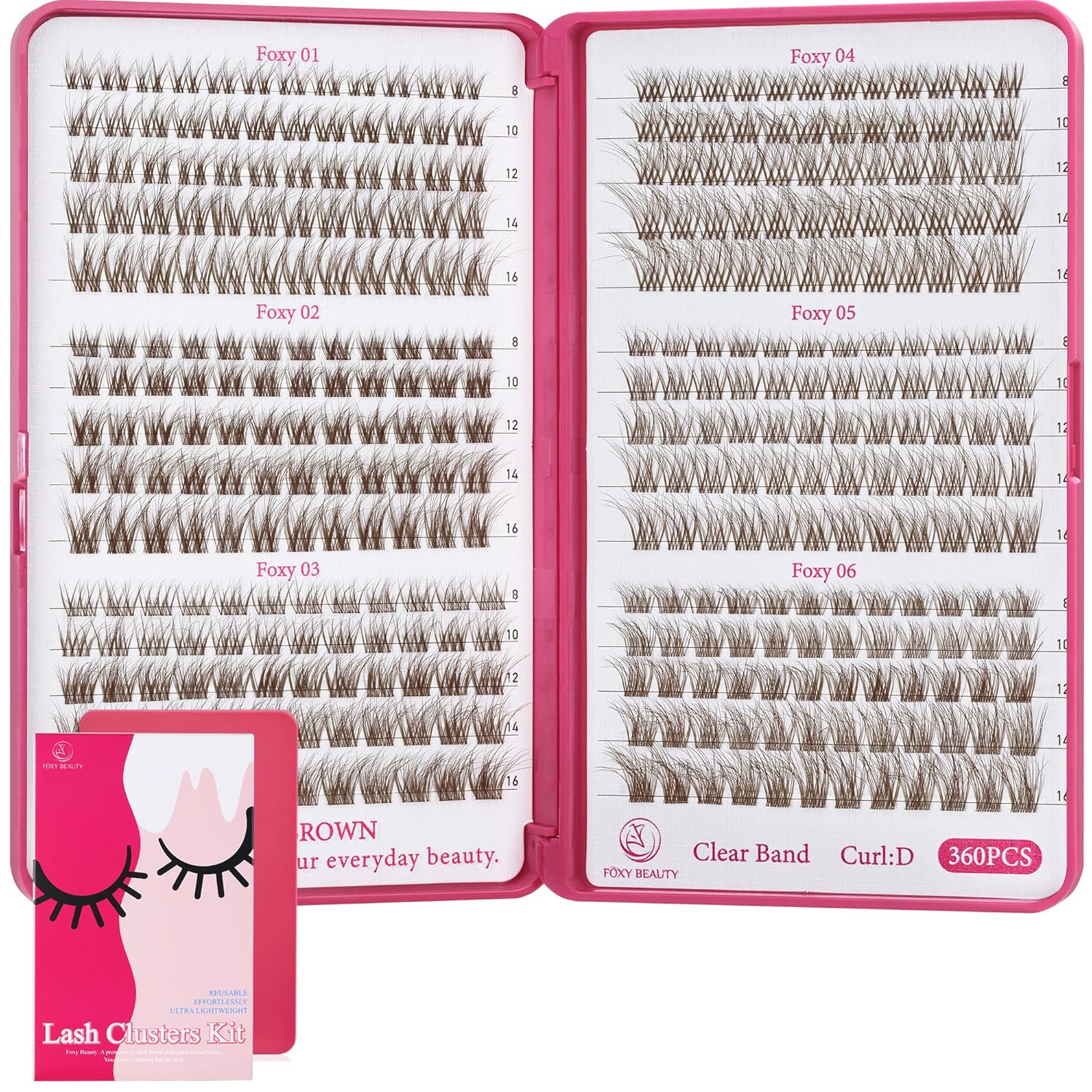 Lash Clusters - Dark Brown Lashes 360PCS Natural Wispy Fluffy Eyelash Clusters 8-16 MM Eyelash Extensions D Curl Faux Mink Lash Extensions DIY at Home