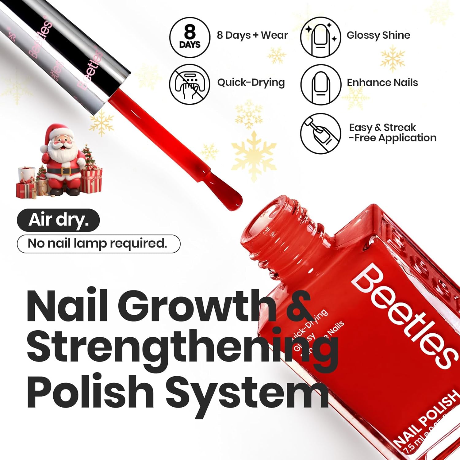 - Air Dry Nail Polish Set: Beetles nail polish set contains stunning red, white and glitter shades. This neutral winter nail polish set boasts colors meticulously picked to match any occasion, outfit, or mood.
