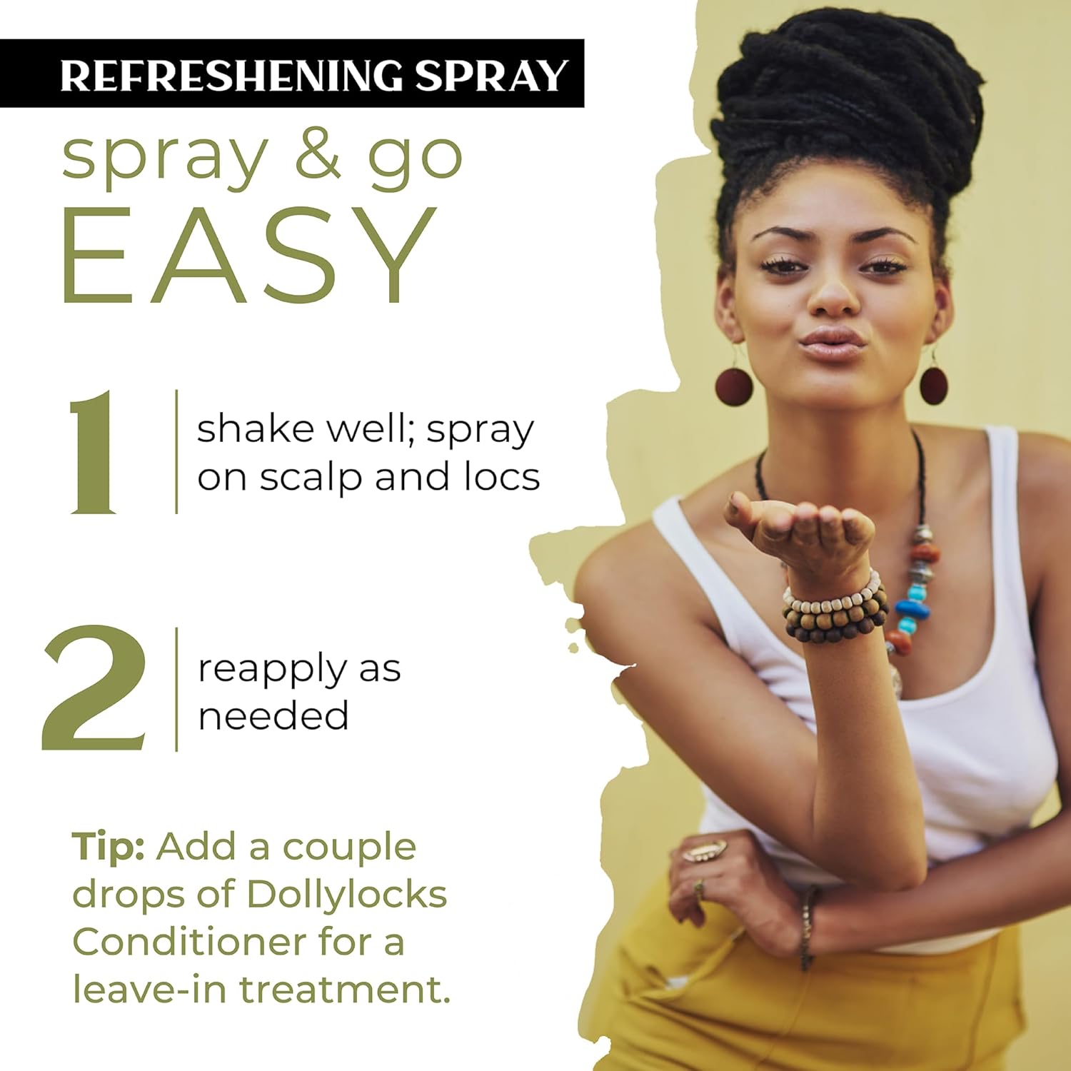 Dollylocks Refreshening Spray – Residue-Free Dreadlock & Loc Moisturizer Spray, Plant Based Deodorizer & Conditioner for Dreads, Vegan & pH-Balanced (Mintea Scent, 8oz)