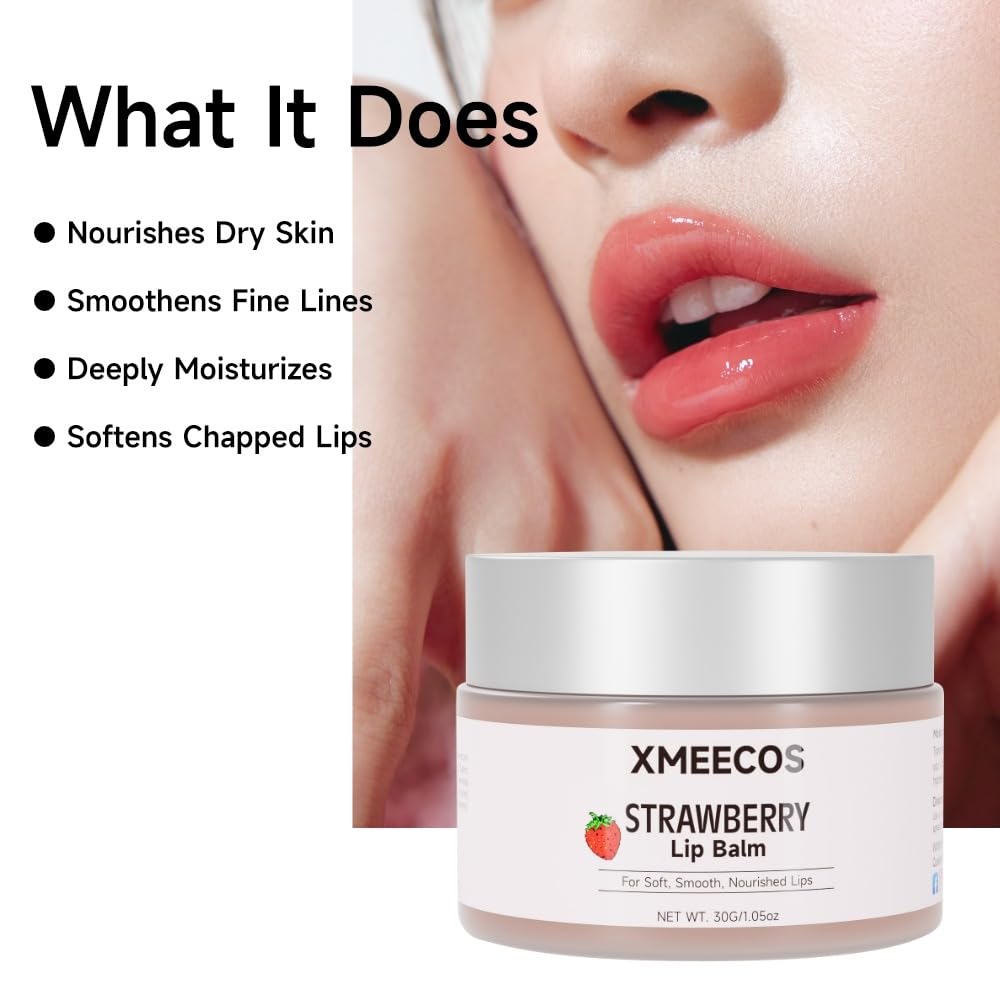 Beeswax lip balm with rose and jasmine, kiwi, strawberry, peach, cherry extract bee friendly 100% Natural for men and women, cruelty free moisturizing (30 Grams, Strawberry)