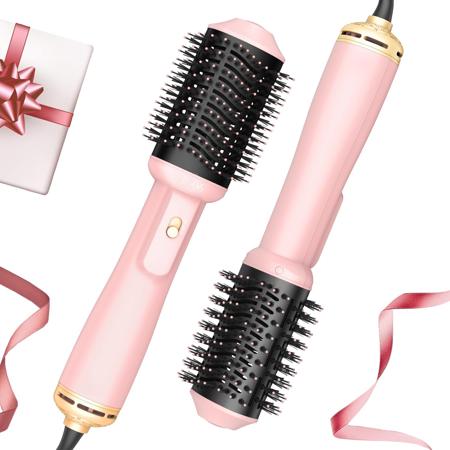 Hair Dryer Brush Blow Dryer in One, 4 in 1 Hair Dryer and Styler Volumizer with Oval Barrel, Professional Salon Hot Air Brush for All Hair Types, Bright Pink