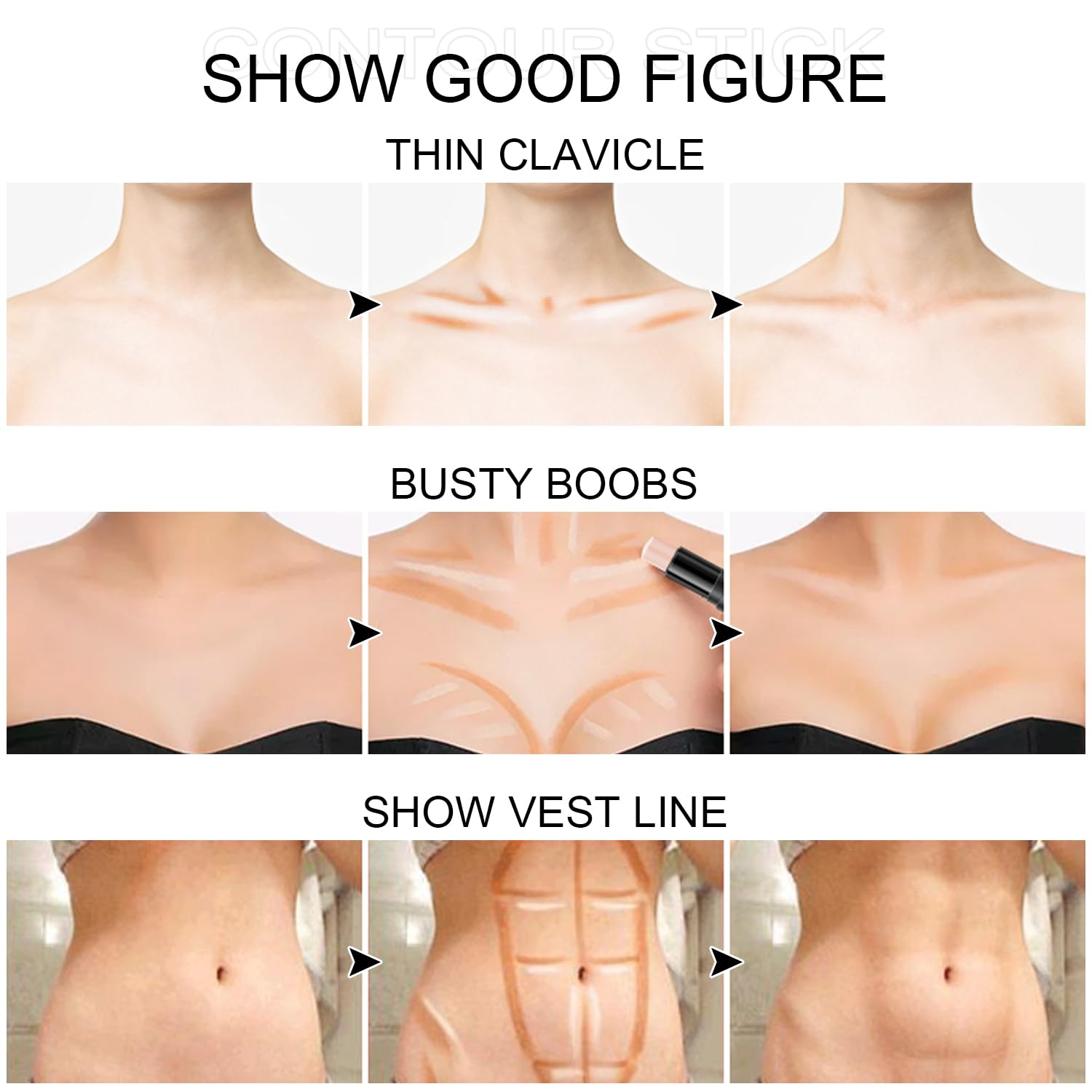 - 【Double-End Contour Stick Makeup Kit】This contour stick makeup kit has shades that includebronzer contour and highlighter. This kit is easy to sculpt your face and add a warm, healthy, glowing natural look complexion to your skin.