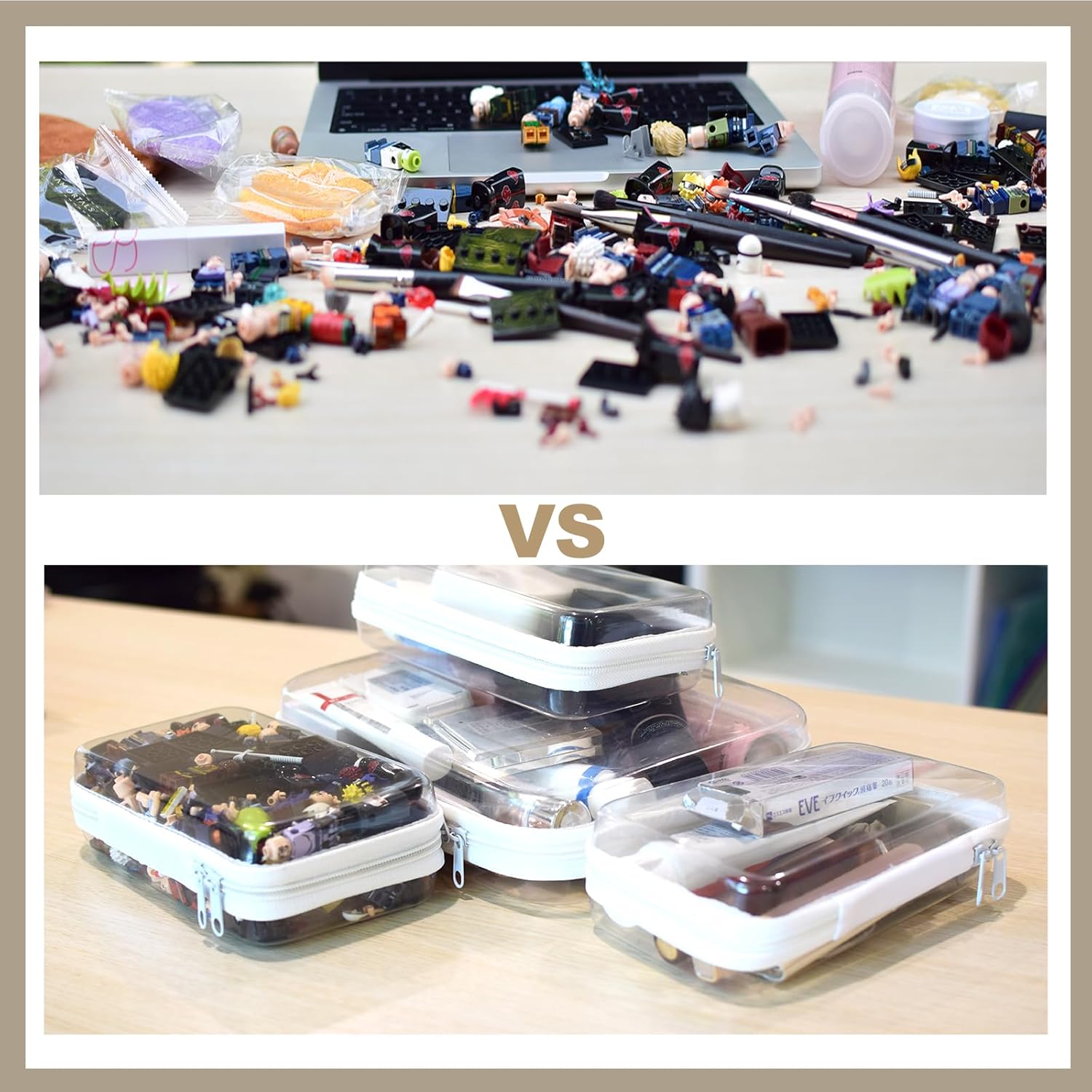- Multi-Use Storage for Daily Essentials. Perfect as a bag organizer for makeup, toiletries, charging cables, pens, or travel-size items. Whether at home or packing a diaper bag, these clear zipper pouches help sort small items with ease.