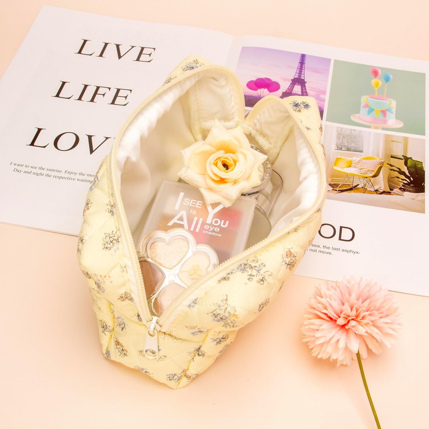 - Versatile Utility: Beyond makeup, utilize this bag for storing skincare products, hair accessories, or even stationery items. Its versatile design makes it an essential addition to your daily essentials or a thoughtful gift option.
