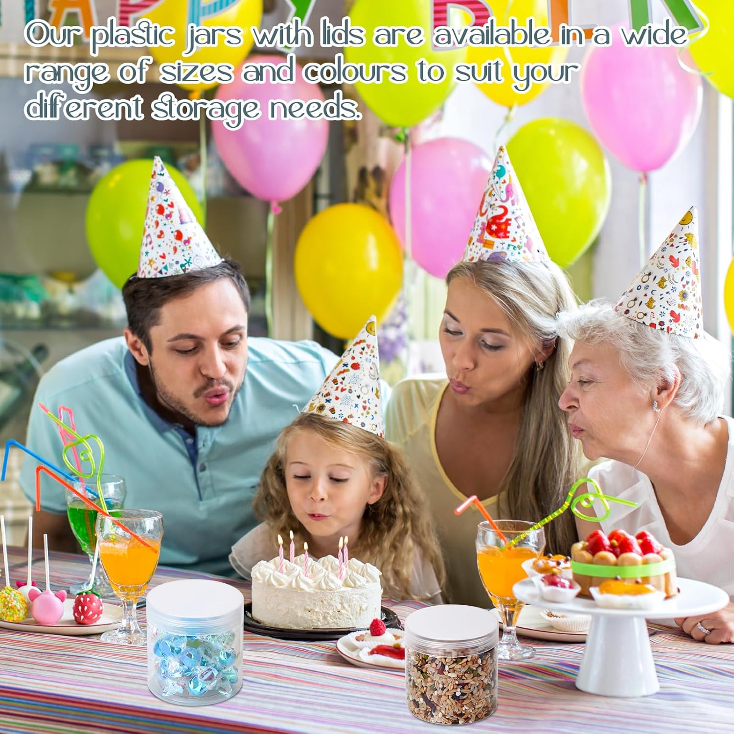 - What You Receive: there are 4 pieces plastic jars with clear screw-on lids; They are durable and refillable, measuring about 2.8 inches/ 7.1 cm in diameter, 2.95 inches/ 7.5 cm in height