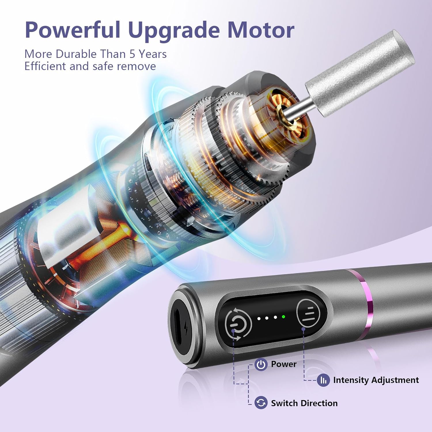 - Professional & Portable: The nail drill features an ergonomic design and lightweight body ensure that you can maneuver the tool with precision, making it easy to control even for extended periods. The easy-to-use speed and direction controls are intuitive, allowing both left-handed and right-handed users to achieve professional results with minimal effort. Whether you're at home or on trip, you can keep your nails looking salon-perfect without the need for lengthy cords or bulky equipment