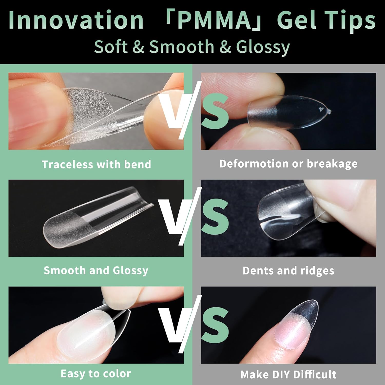 - No Trace Gel Nail Tips Soft: Crafted from gelly soft material gel, these fake nails leave no trace even when bent. Their bright clarity allows for easy pressing, trimming, and painting, helping you create your ideal nail shape effortlessly. Perfect for a true DIY manicure.