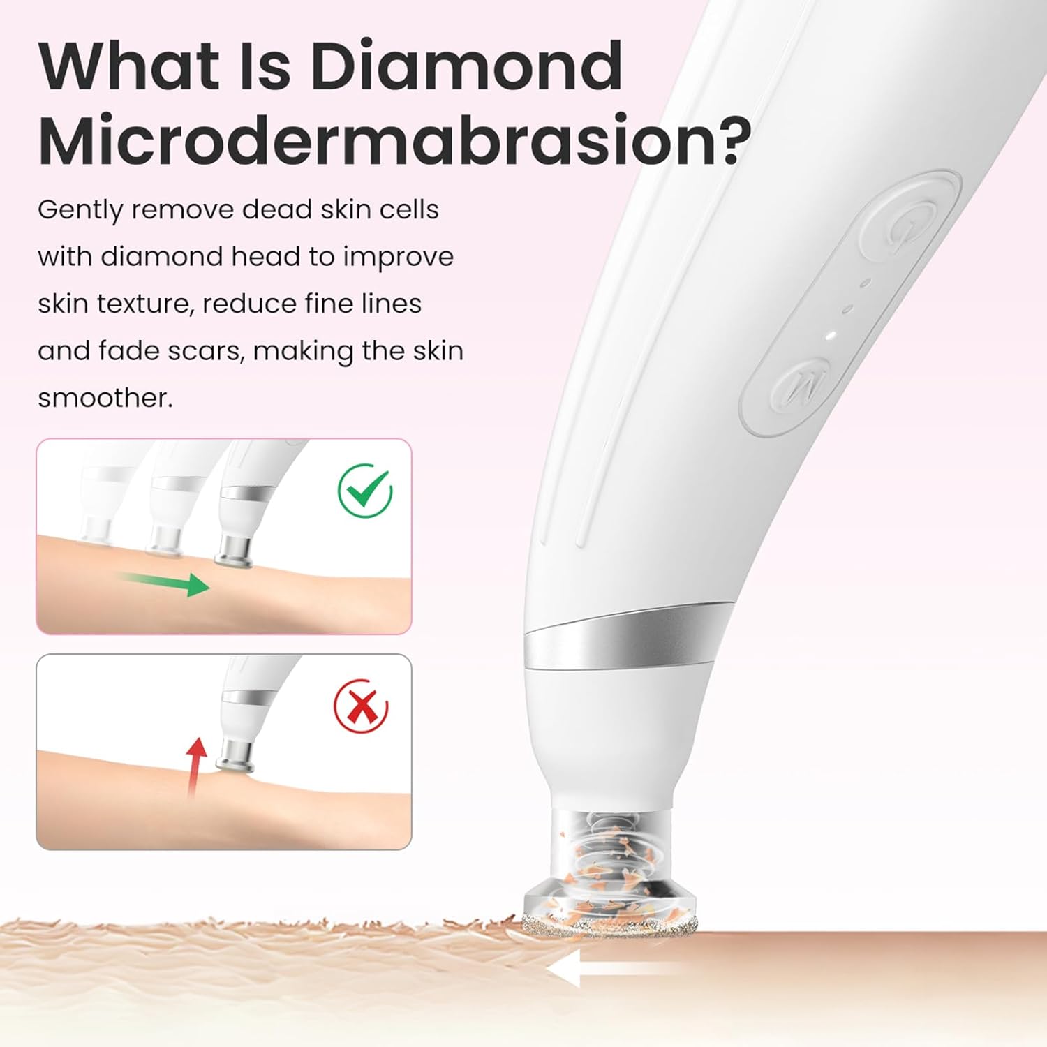 - 【Gentle yet Effective】Concerned that the suction might be too strong and cause abrasions? Put your worries aside. The diamond microdermabrasion machine is safe and gentle for all skin types. It features 3 adjustable suction levels, We would recommend starting with the lowest suction level until you are more familiar and comfortable with using the microdermabrasion tool