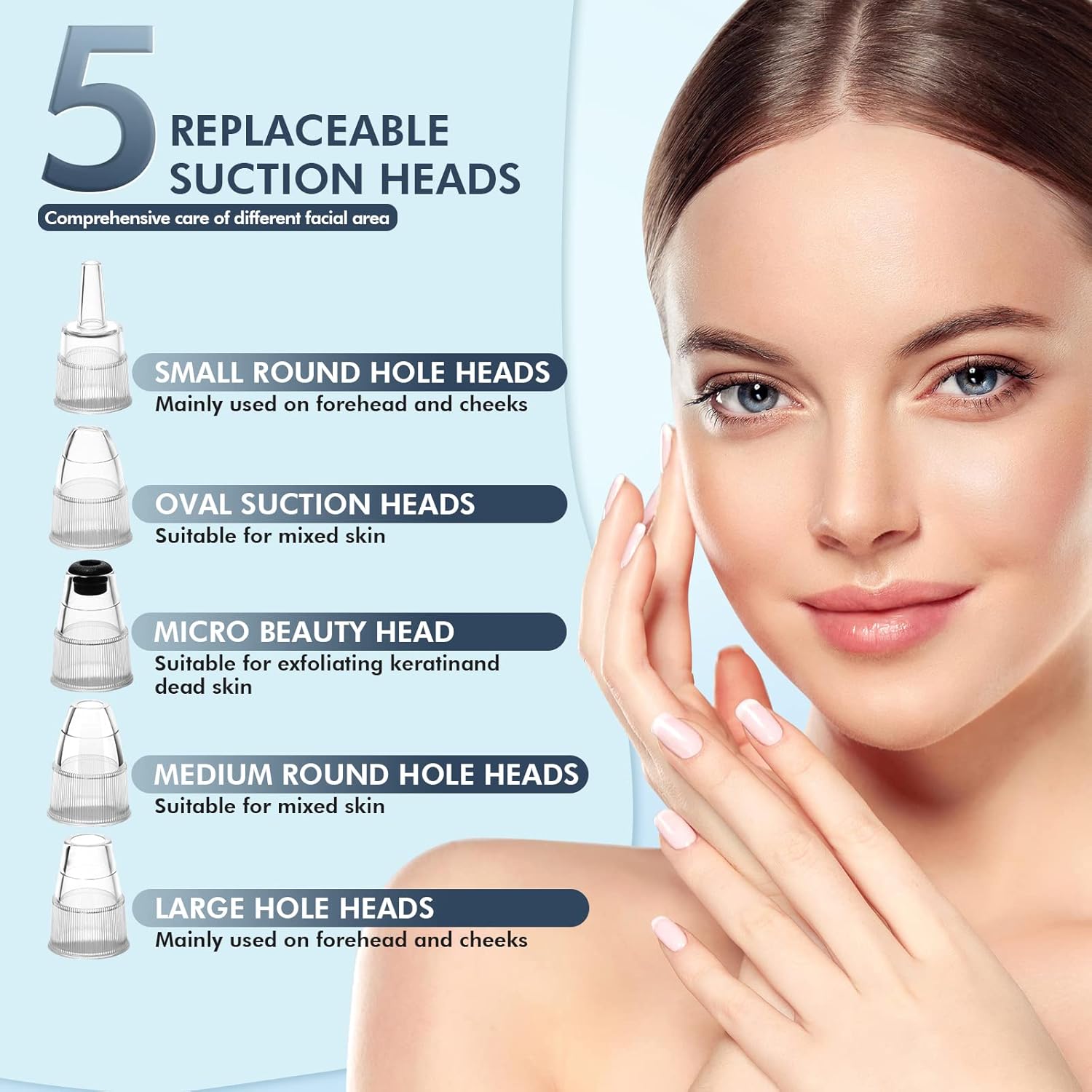 Blackhead Remover Pore Vacuum, Upgraded Black Head Remover for Face, Electric Acne Comedone Whitehead Extractor Tools-5 Suction Power, 5 Probes, USB Rechargeable Pimple Popper Tool Kit