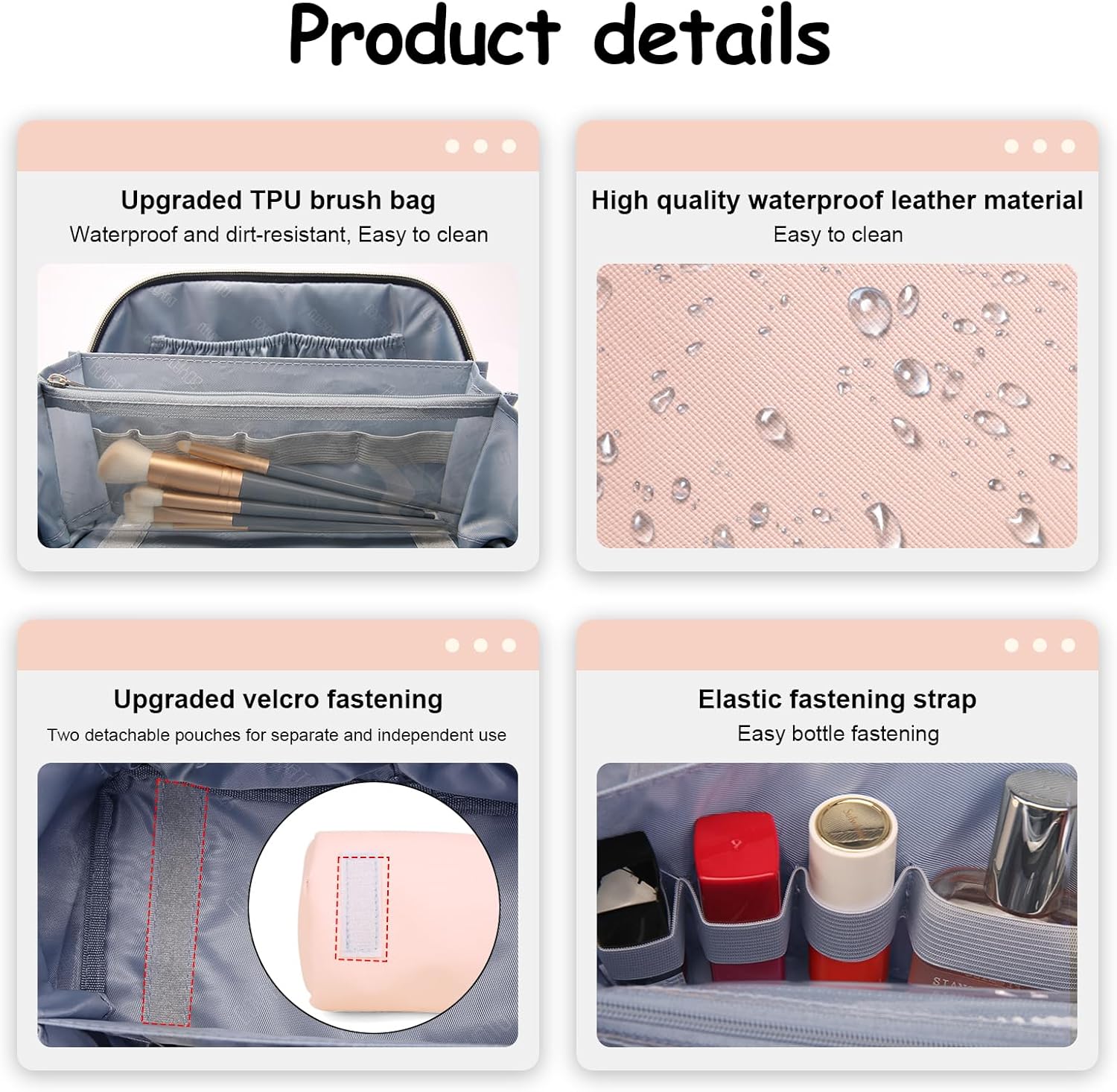 - 3 Pcs Makeup Bags Set: This travel make up bag comes with two detachable makeup pouches, ensuring optimal organization for your skincare products and cosmetics. Perfect for your travel, business trips, vacations, outdoor activities and picnics.