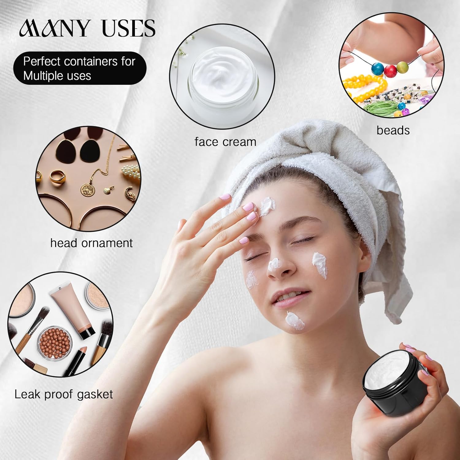 Patelai 4 Pieces Round Wide-mouth Leak Proof Plastic Container Jars with Lids for Travel Storage Makeup Beauty Products Face Creams Oils Salves Ointments DIY Making(1 Ounce,Pure Black)