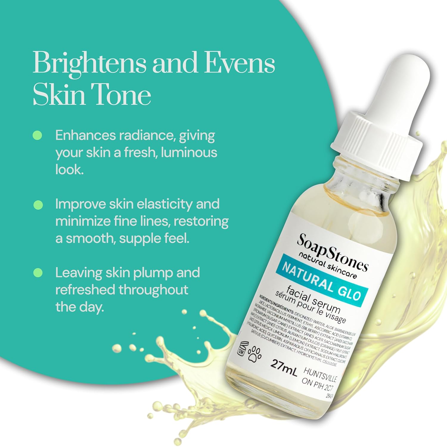 Soapstones Natural Glo Facial Serum - Niacinamide and Hyaluronic Acid Vitamin C Serum - Bilberry, Sugar Cane, Maple, Lemon and Orange Extracts Infused Face Serum