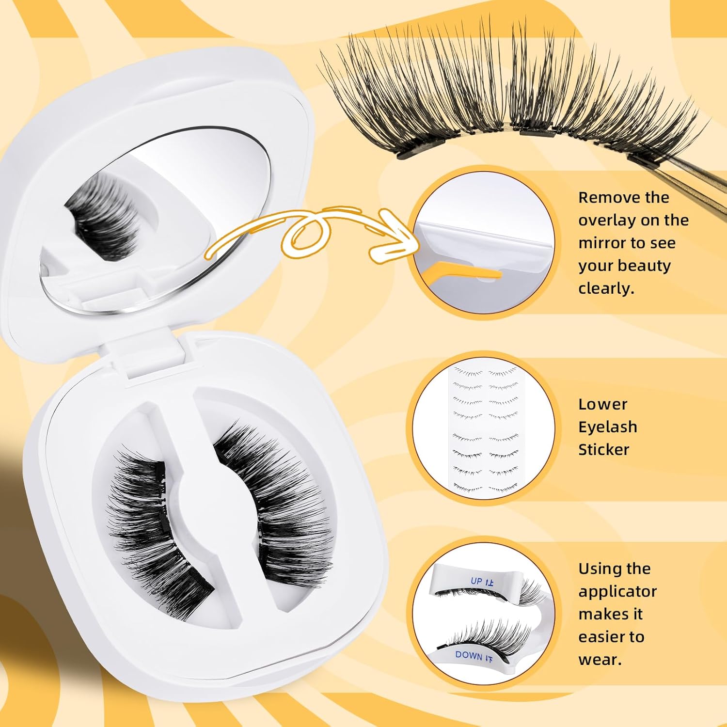 - Magnetic Eyelash Kit: The magnetic eyelash kit includes 1 pair of magnetic eyelashes, 1 magnetic applicator, 1 small magnetic box with mirror and one instruction sheet. Magnetic eyelashes are easy to operate and only take 1 minute to complete, effectively saving your makeup time and allowing you to stayed on through an entire sweaty rave!