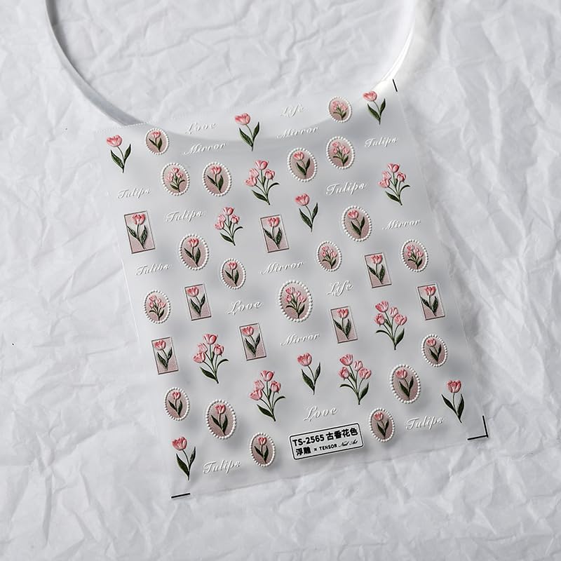 - Flower Nail Decals: 1 sheets of 5D embossing carving patterns pink flower nail stickers give you an and advanced exquisite feeling. Floral tulips flower elements nail decals, cute and beautiful patterns designs, suitable for decorations for your spring summer nails