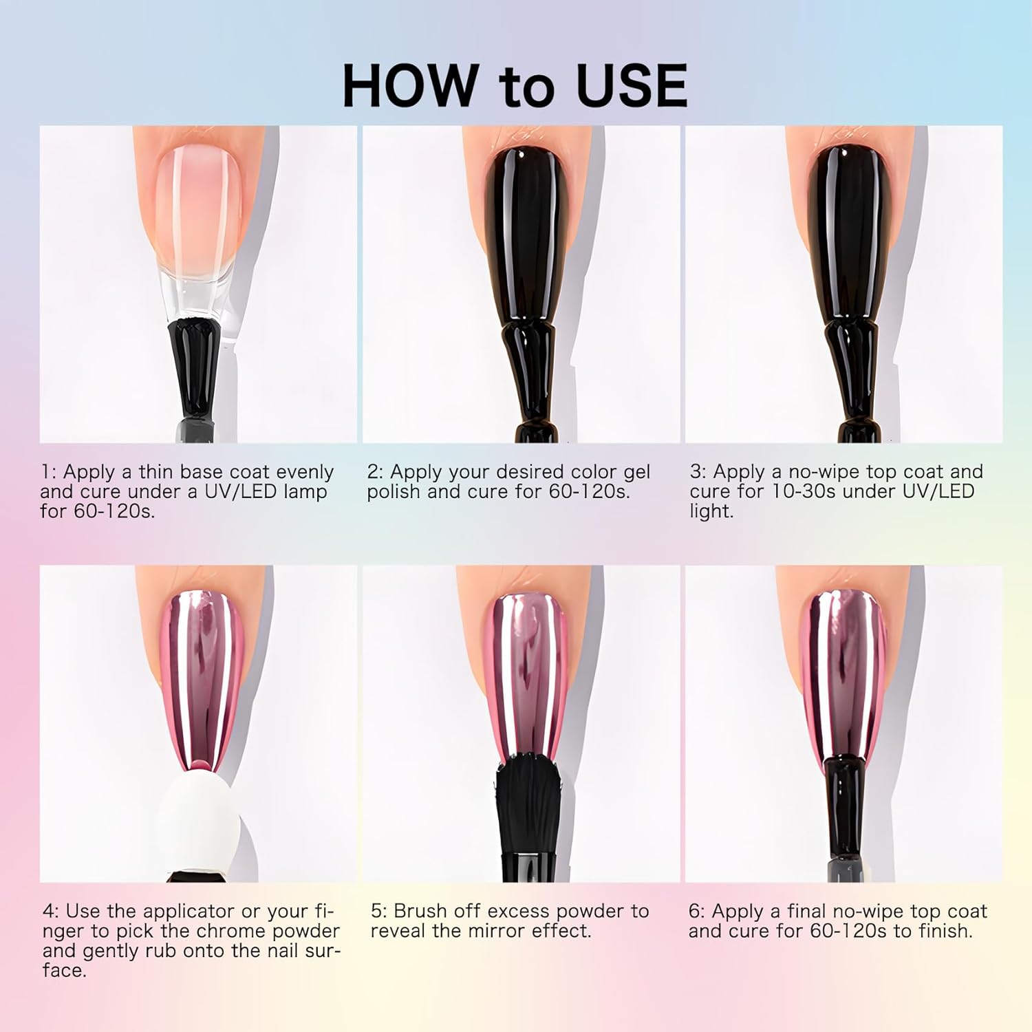 - Wide Application for Every Nail Type: This nail chrome set works on natural nails, UV gel nails, acrylic nails, and nail tips. It pairs perfectly with gel polish for versatile, customizable nail art. Suitable for both beginners and professionals