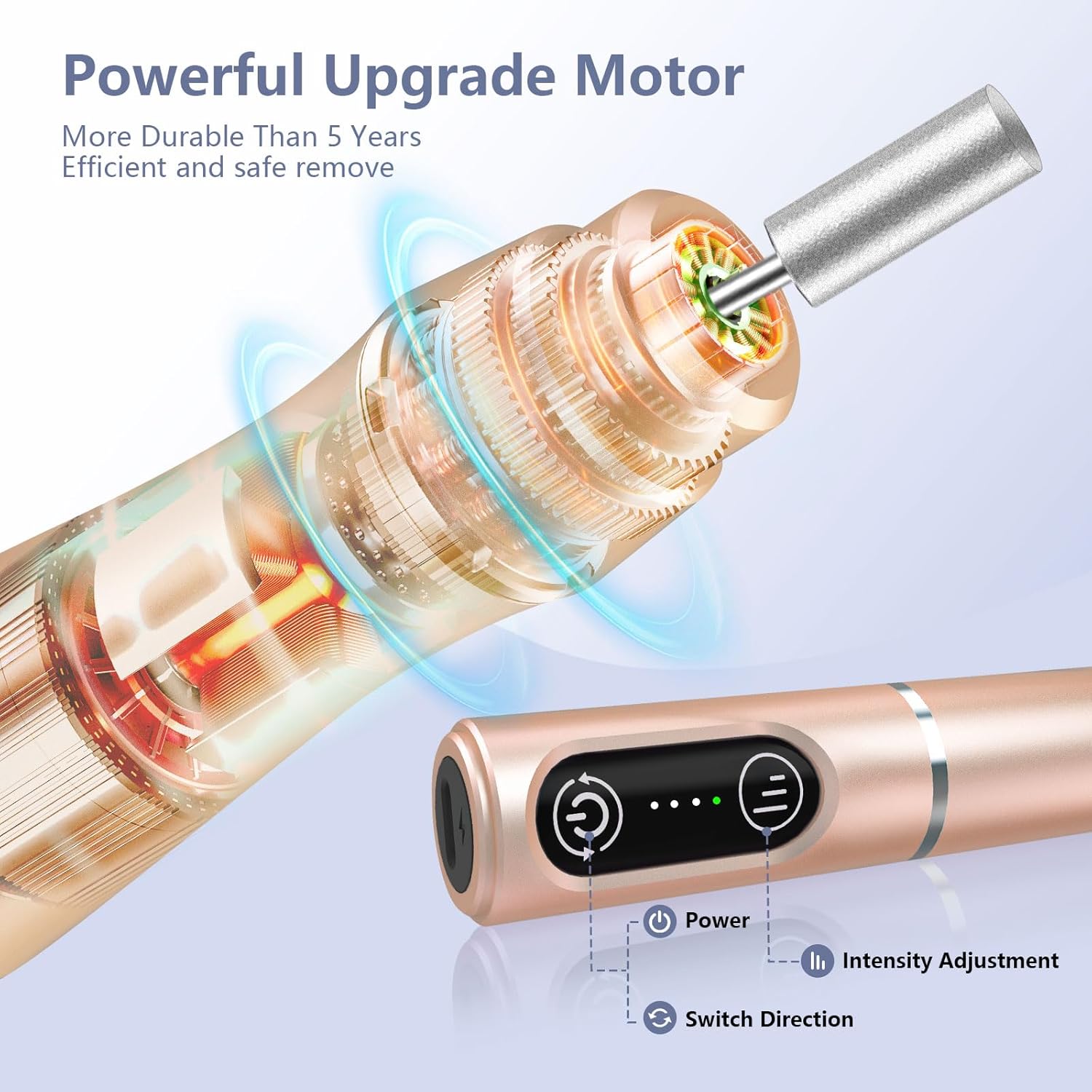 Cordless Nail Drill Electric Rechargeable File Kit, Professional Efile Acrylic Gel Nail Polish Remover Pedicure Manicure Machine Portable Set with 11 Bits 56 Sanding Bands for Salon Home (Gold)