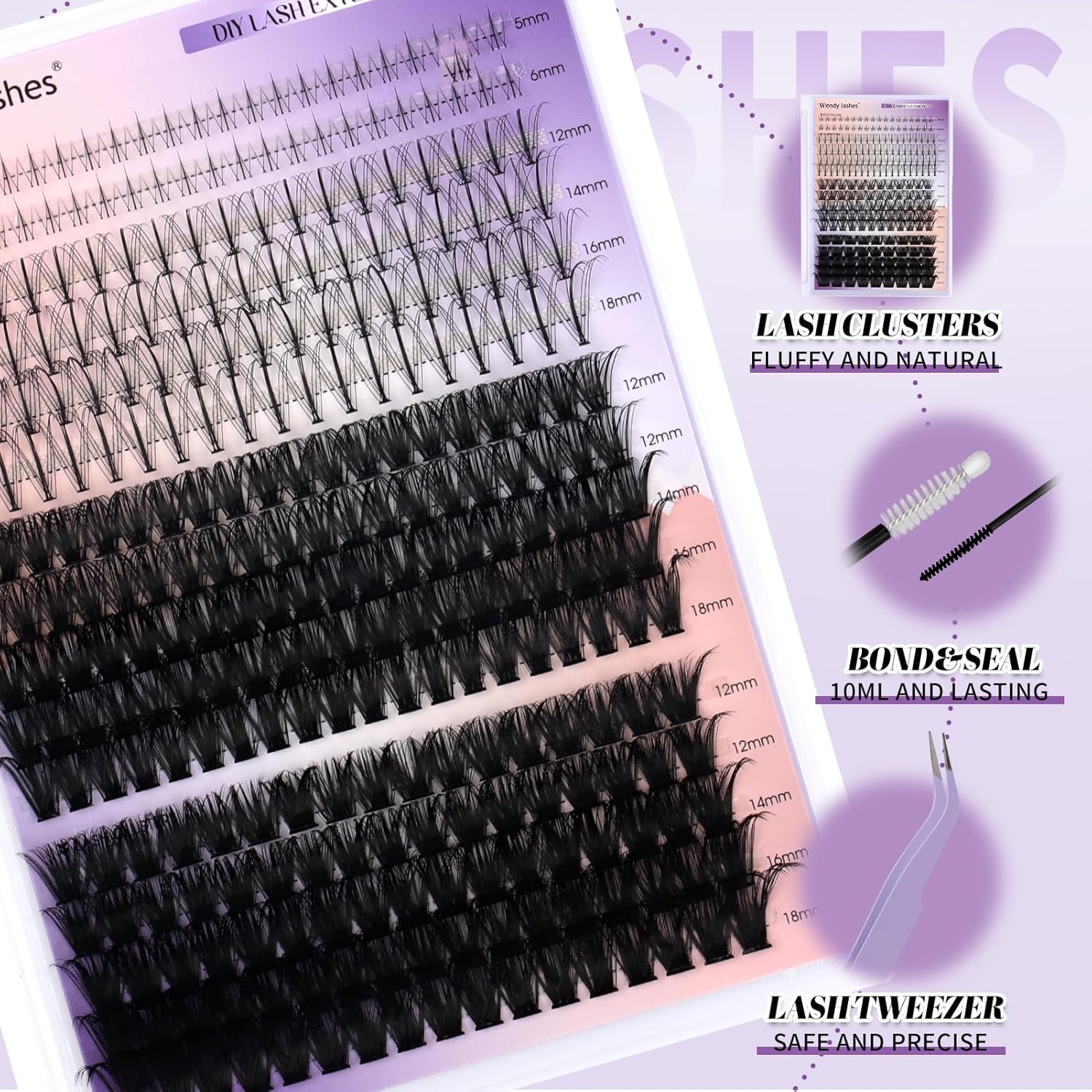 - You Will Get:a combination tray kit of upper and lower lashes,including four different styles of lash clusters,lash bond and seal,tweezers for cluster lashes,a kit meets all your lash needs. Save time and budget by going to the eyelash extension salon to create beautiful makeup with ease.