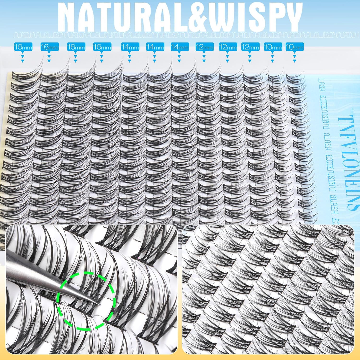 - New Natural Eyelash Clusters Kit: TNFVLONEINS designed a new natural eyelash clusters to create a charming eyelash extension effect; 0.07mm ultra-thin individual lashes, comfortable and soft, seamless integration of natural lashes