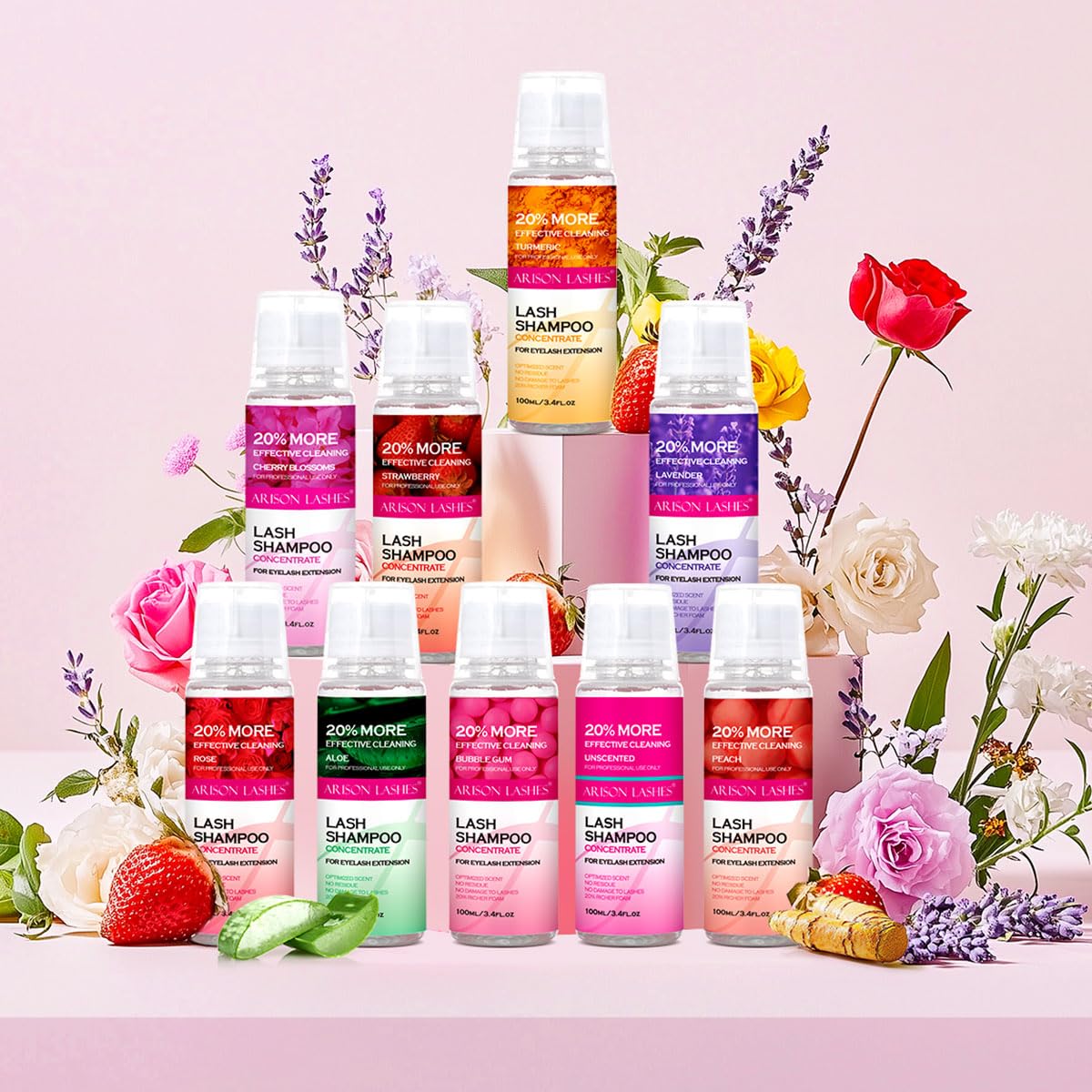 ARISON LASHES Lash Shampoo Concentrate for Lash Extensions 100ML Eyelash Cleanser Concentrate Oil-Free Eyelash Extension Shampoo with Salon Home Care(Cherry Blossom)