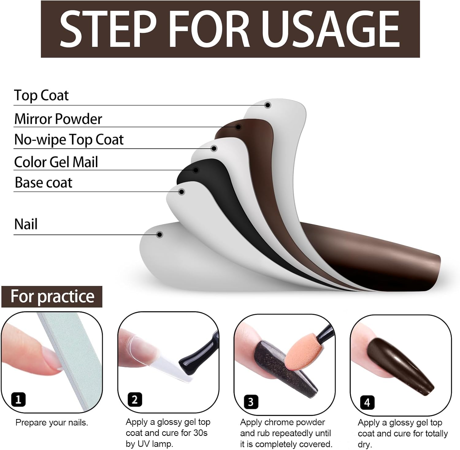 - PACKAGE CONTENTS:1 PCS chrome nail mirror pigment powders. It needs to be used with gel nail polish and no wipe top coat. They can make many different design for your gel nail polish. It gives different color base a pearly shine for your nails