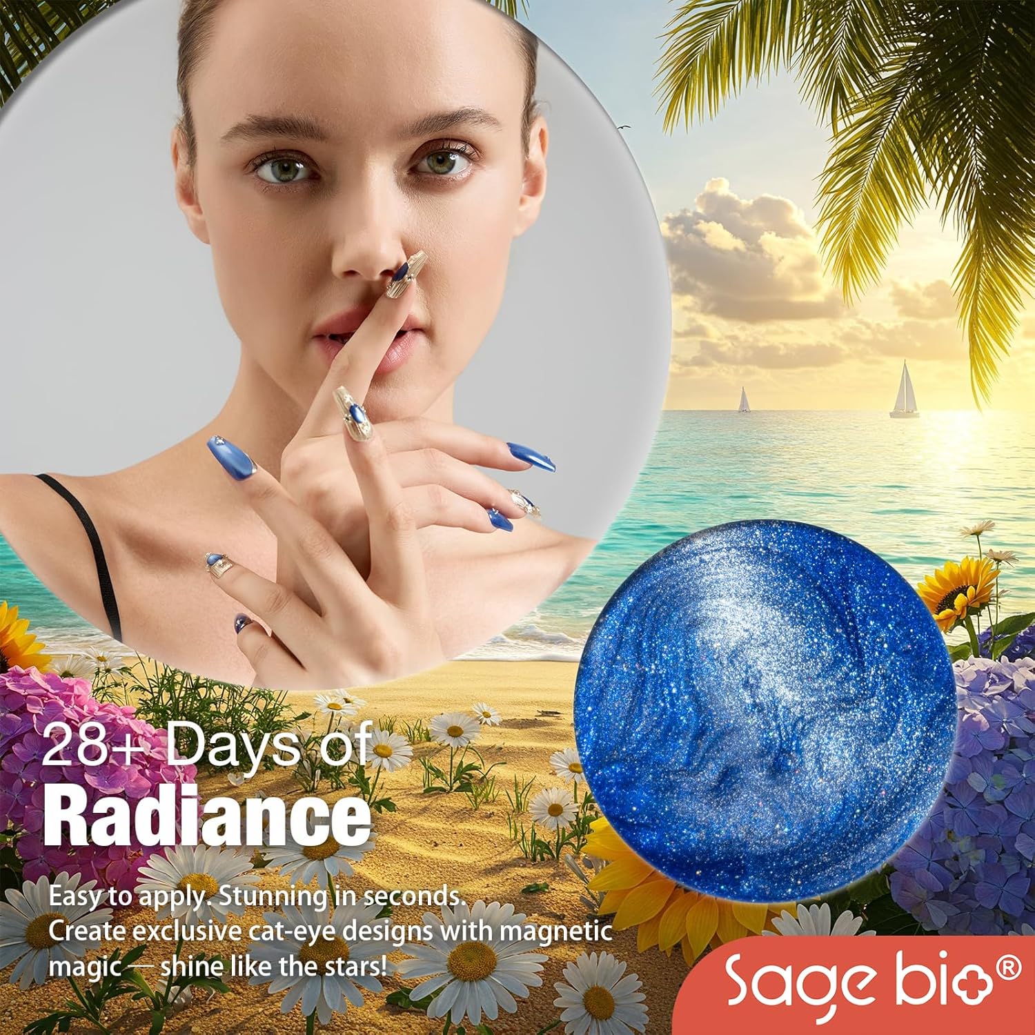- Captivating 3D Cat Eye Effect: Create mesmerizing, multi-dimensional designs with SAGEBIO's cat eye gel polish. The included magnet stick helps you achieve a dazzling 3D magnetic effect that shifts beautifully with light.