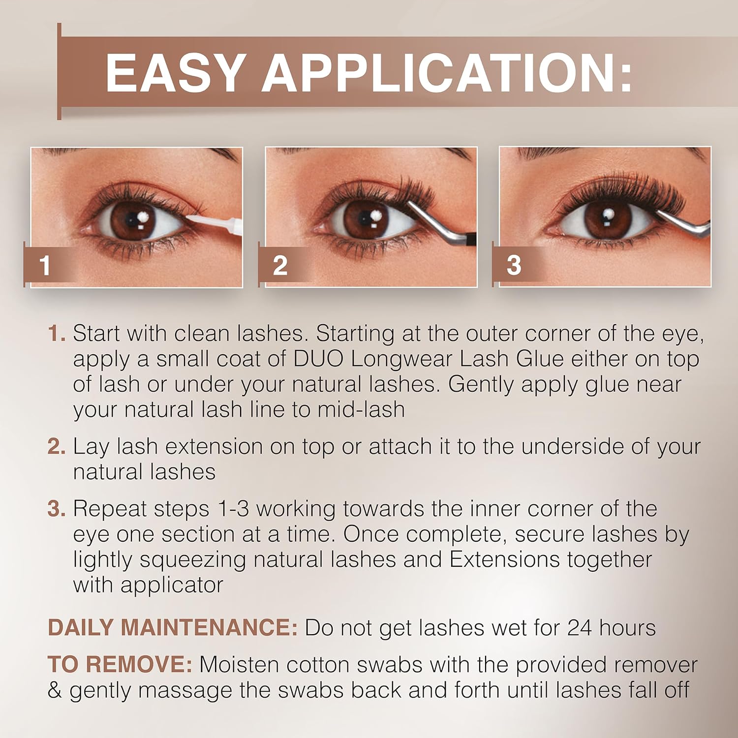 - Versatile and Easy: Apply above or below your lash line with ease. Perfect for intermediate lash users wanting an eyelash extensions kit with pro tools and long-wear lash glue.