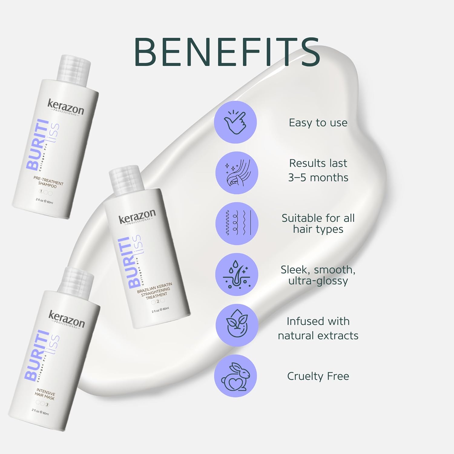 Brazilian Keratin Straightening Treatment KIT 2fl.oz Buriti Liss Collagen Pro For all hair types