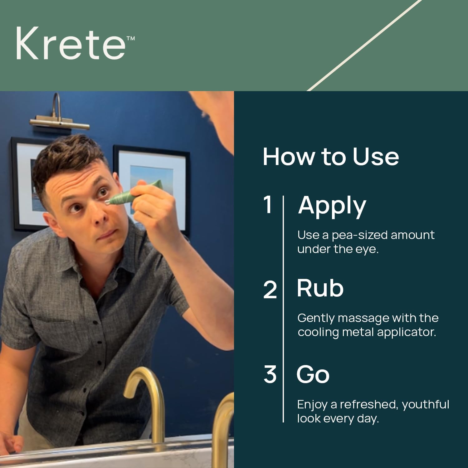 KRETE Cooling Under-Eye Stick with Liposomal Caffeine and Tripeptide-5 - Helps with Dark Circles and Puffiness, Vegan & Cruelty-Free, 15ml