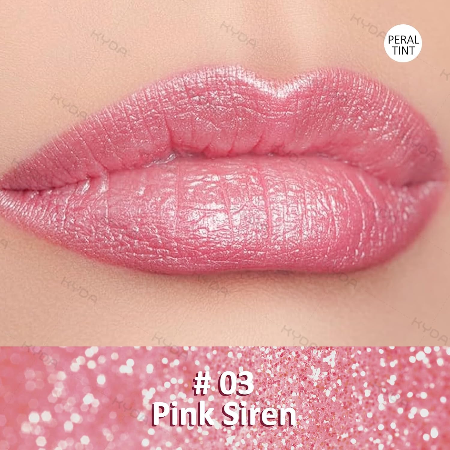 KYDA Pink Shimmer Lipstick, Metallic Pearl Lipstick, Lasting Non-sticky Glitter Lips Color, High Glossy Lips Makeup for Women, Pink Siren