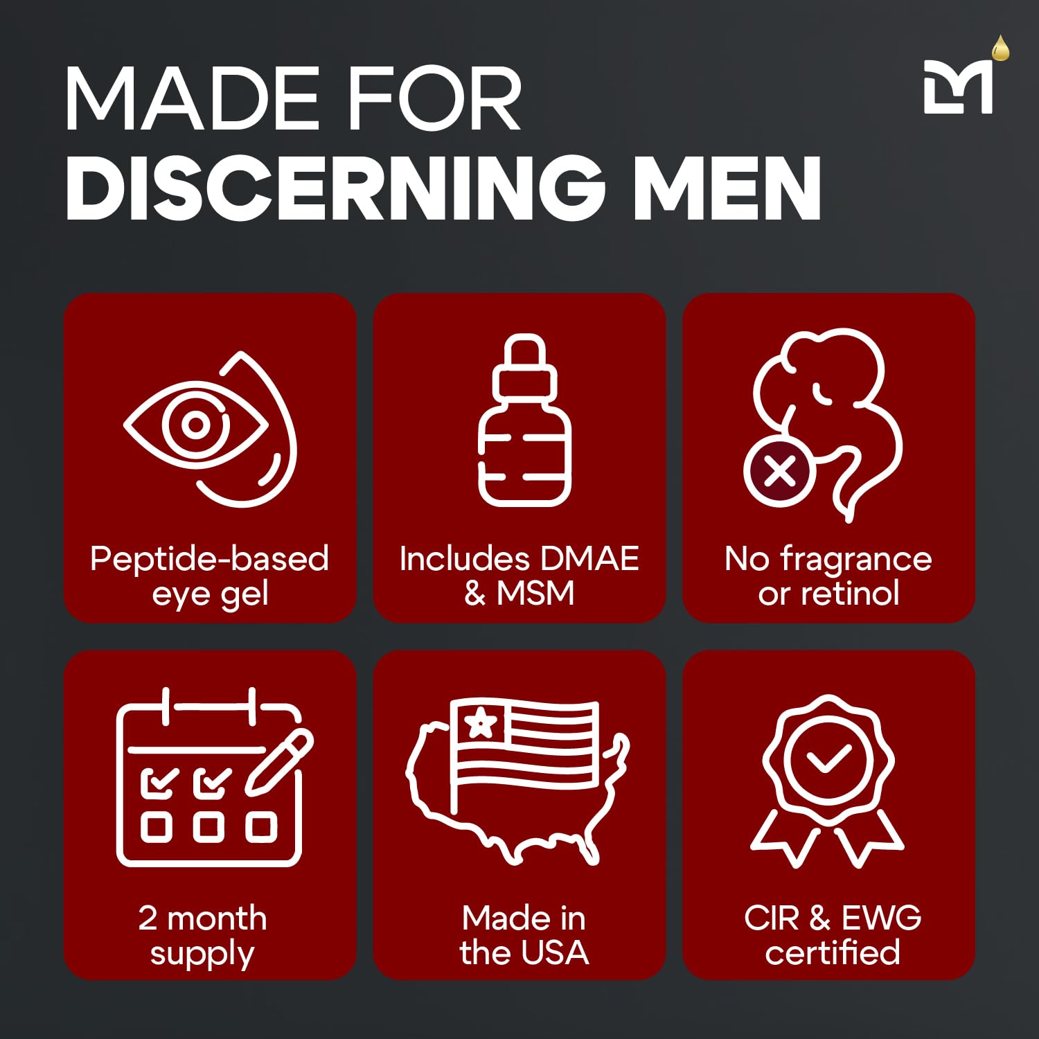 - Higher Standards in Under Eye Bags Treatment for Men: This mens eye cream formula is engineered and made right here in the USA; We made sure every ingredient passes the highest safety standards from both CIR and EWG – the top authorities in men's face care safety