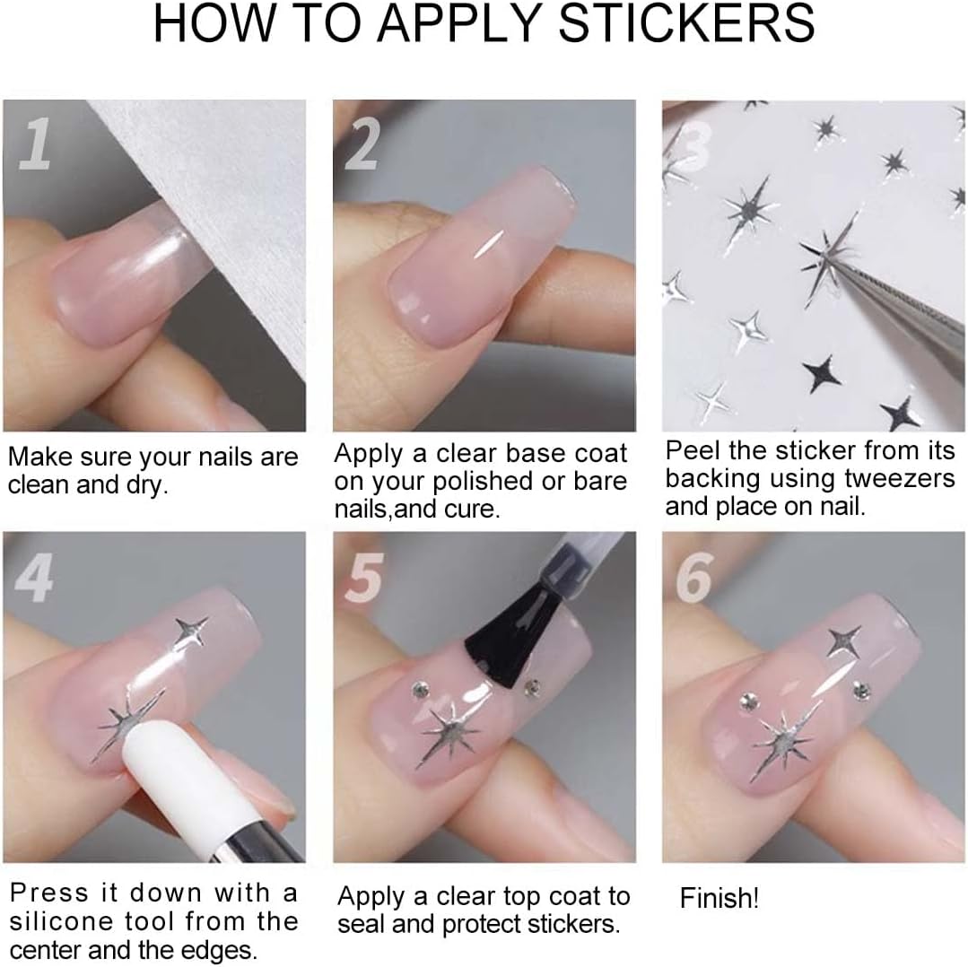 - Easy to use: Just stick gold nail stickers on your nails, easy and time-saving(Tweezers work better here).Similarly, just peel off them if you want to remove them. You can use a layer of nail polish to fix for long-term lasting