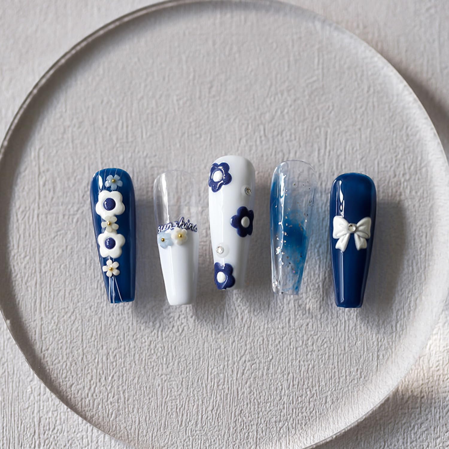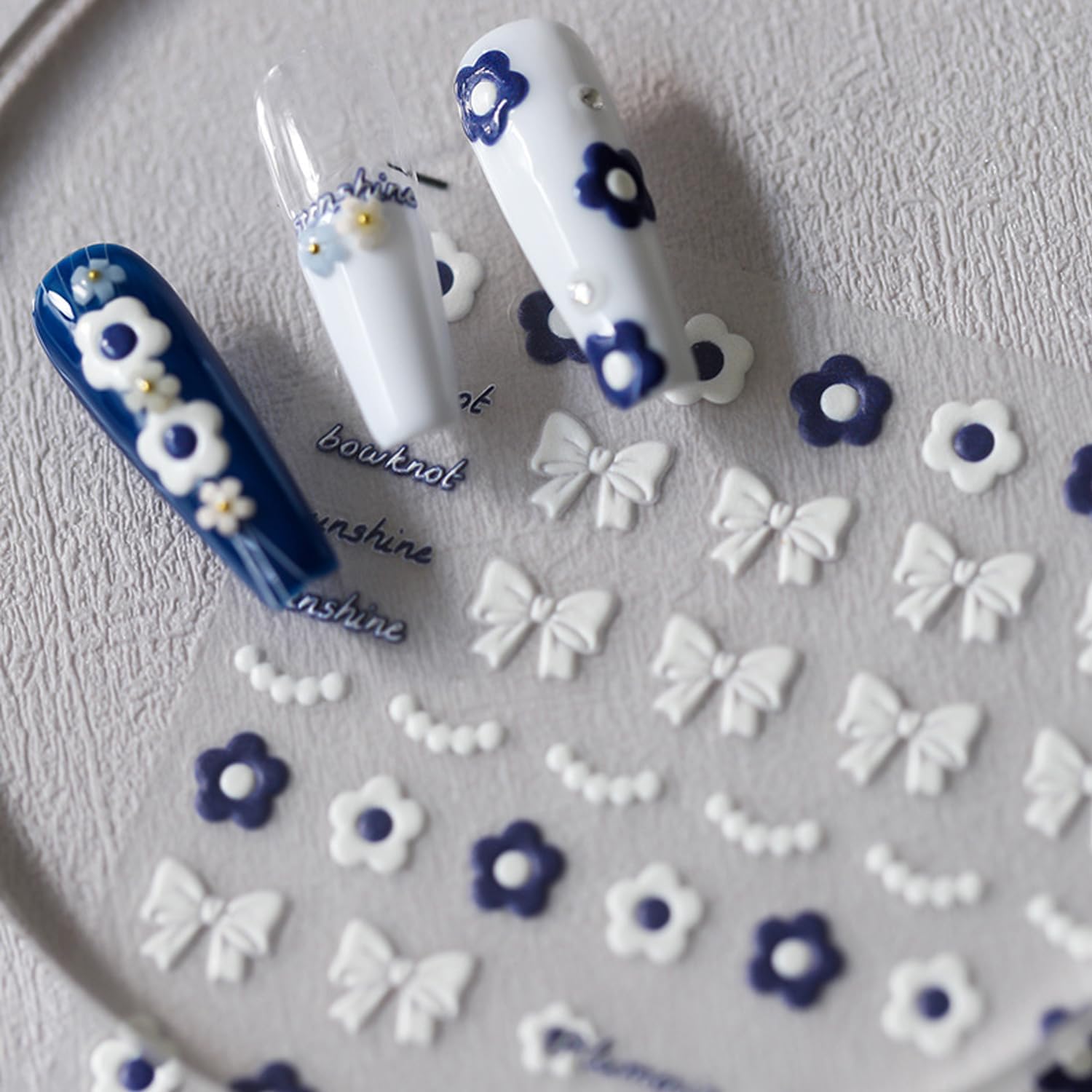 - spring summer nail stickers for nail art for women kids girls holiday cute flower nail art stickers 5D embossed nail decals design blue floral fingernail stickers calcomanĂas para uñas sticker para uñas