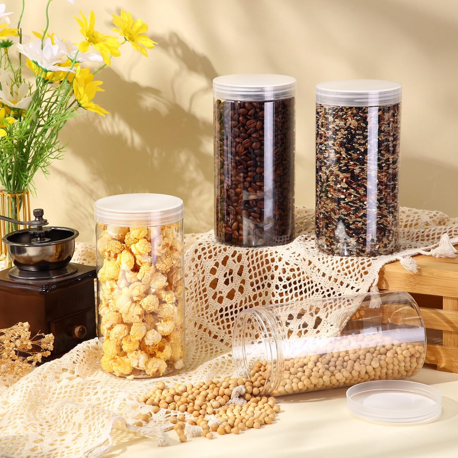 - What You Receive: there are 4 pieces plastic jars with black screw-on lids; They are durable and refillable, measuring about 32 oz in capacity