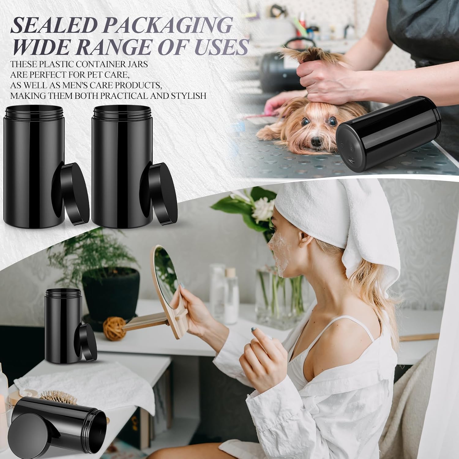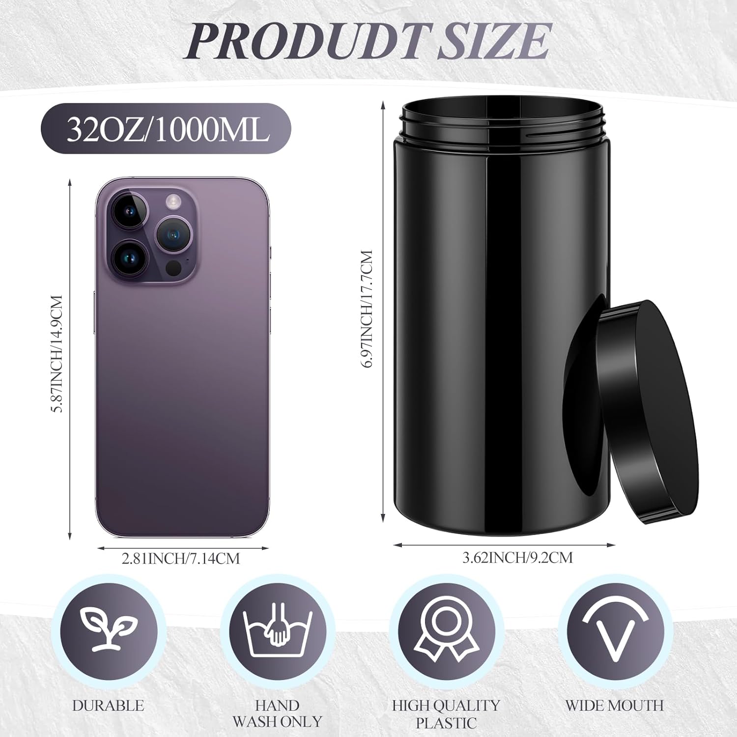 - What You Receive: there are 4 pieces plastic jars with black screw-on lids; They are durable and refillable, measuring about 32 oz in capacity
