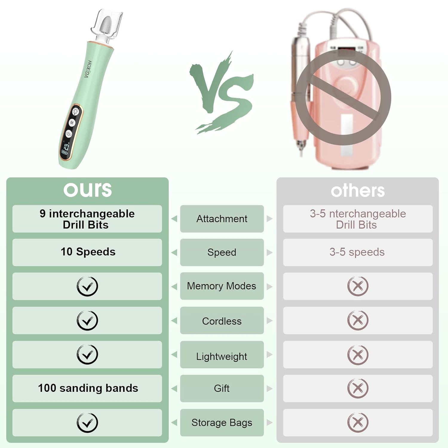 - What you will get: The Electric Nail Drill Kit comes with 9 interchangeable drill bits,100 sanding bands , Type-C charging cable to give your nails a salon-worthy look, this nail kits are the best gift for your nail lovers friends, It's so convenient and you can do a hand or foot care salon privately at home, and everything you need is included.