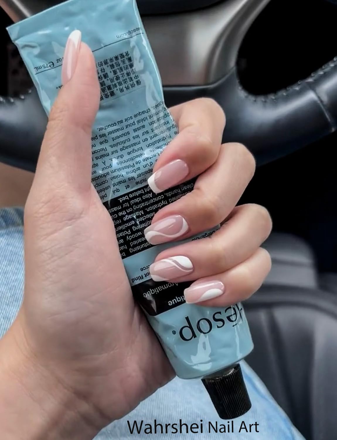 Semi Cured Gel Nail Strips, Irregular French, Strips 20pcs Gel Nails Sticker UV for Home Nails DIY