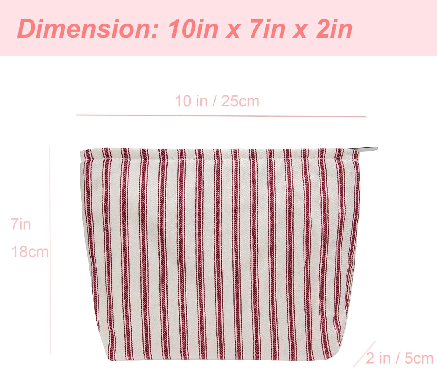 PAZIMIIK Makeup Bag Large Cotton Zipper Pouch for Purse Travel Canvas Make Up Organizer for Women Cosmetic,Vintage Stripe Red