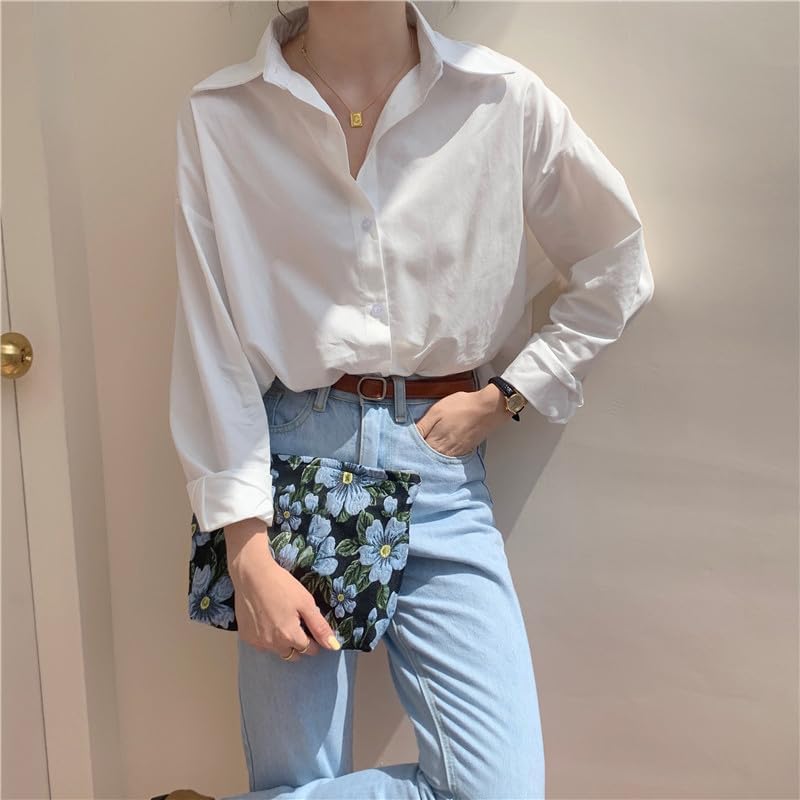 PAZIMIIK Makeup Bag Large Cotton Zipper Pouch for Purse Travel Canvas Make Up Organizer for Women Cosmetic,Brocade Flower Black